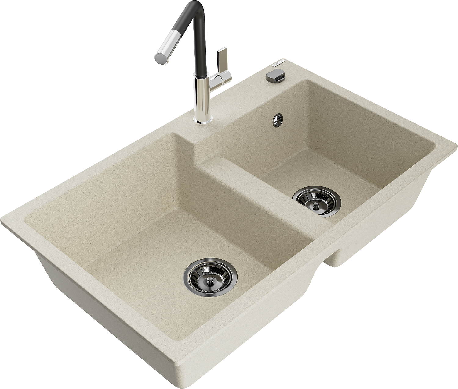 The sink is made of high quality granite. It is an elegant and, above all, practical complement to every kitchen, regardless of its style. High quality and granite durability ensure many years of use.
