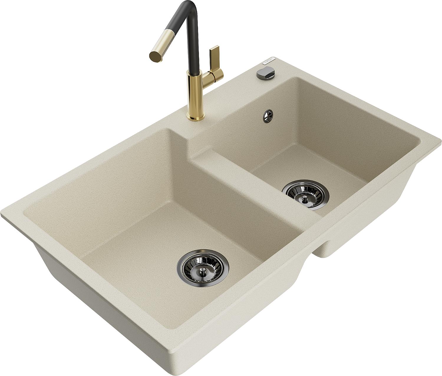Mexen Tomas granite 2-bowl sink with Flora kitchen tap, beige - 6516-69-670401-57-B