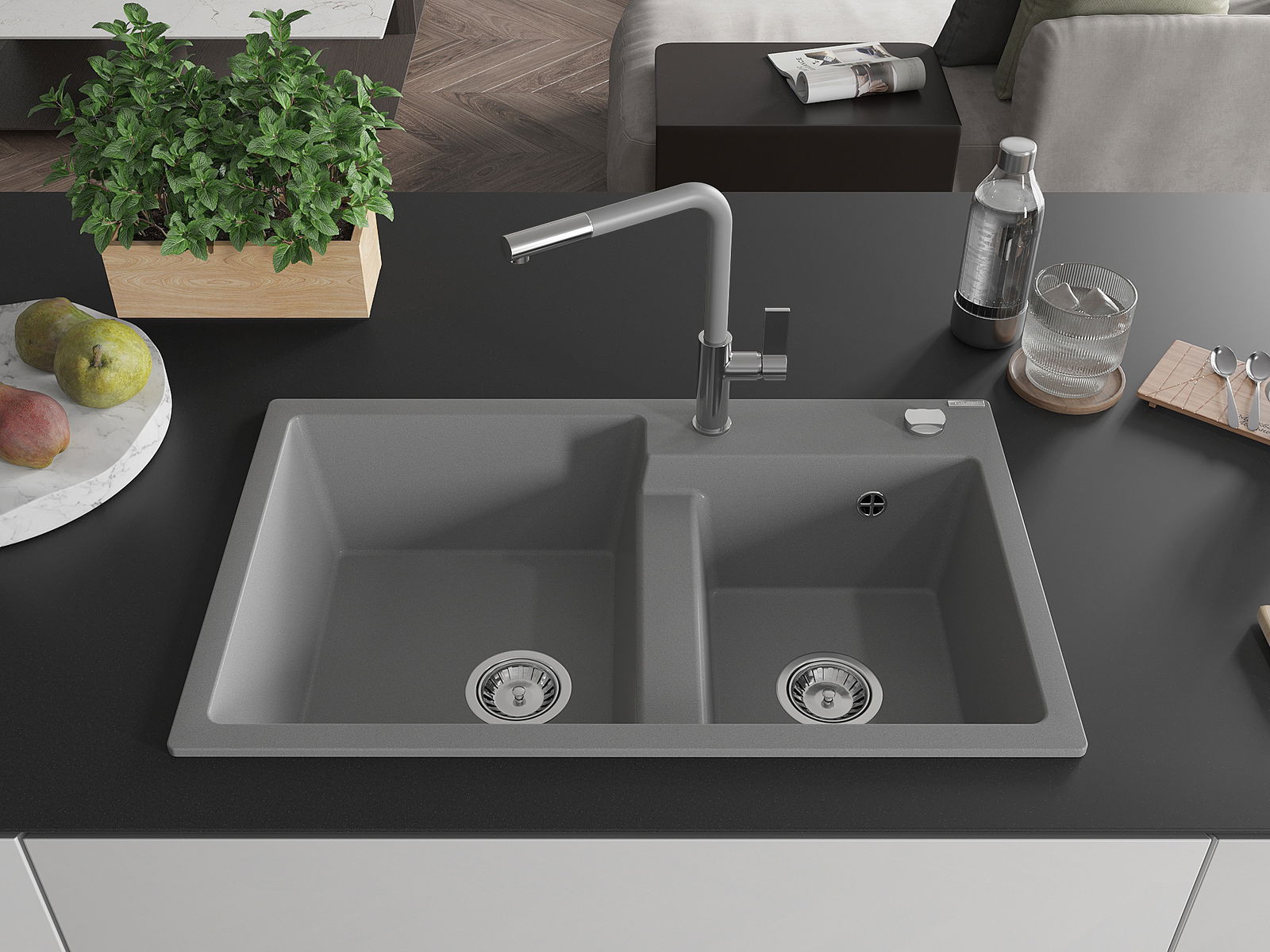 The sink is made of high quality granite. It is an elegant and, above all, practical complement to every kitchen, regardless of its style. High quality and granite durability ensure many years of use.