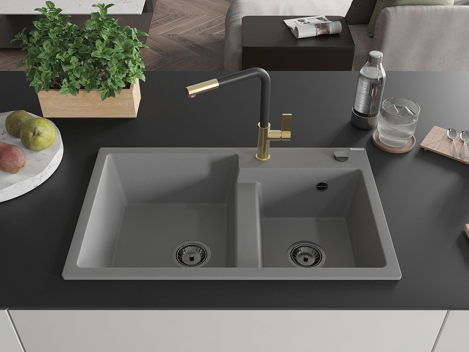 The sink is made of high quality granite. It is an elegant and, above all, practical complement to every kitchen, regardless of its style. High quality and granite durability ensure many years of use.
