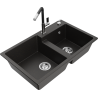 Mexen Tomas granite kitchen sink 2-bowl with Flora kitchen tap, black/silver metallic - 6516-73-670401-07