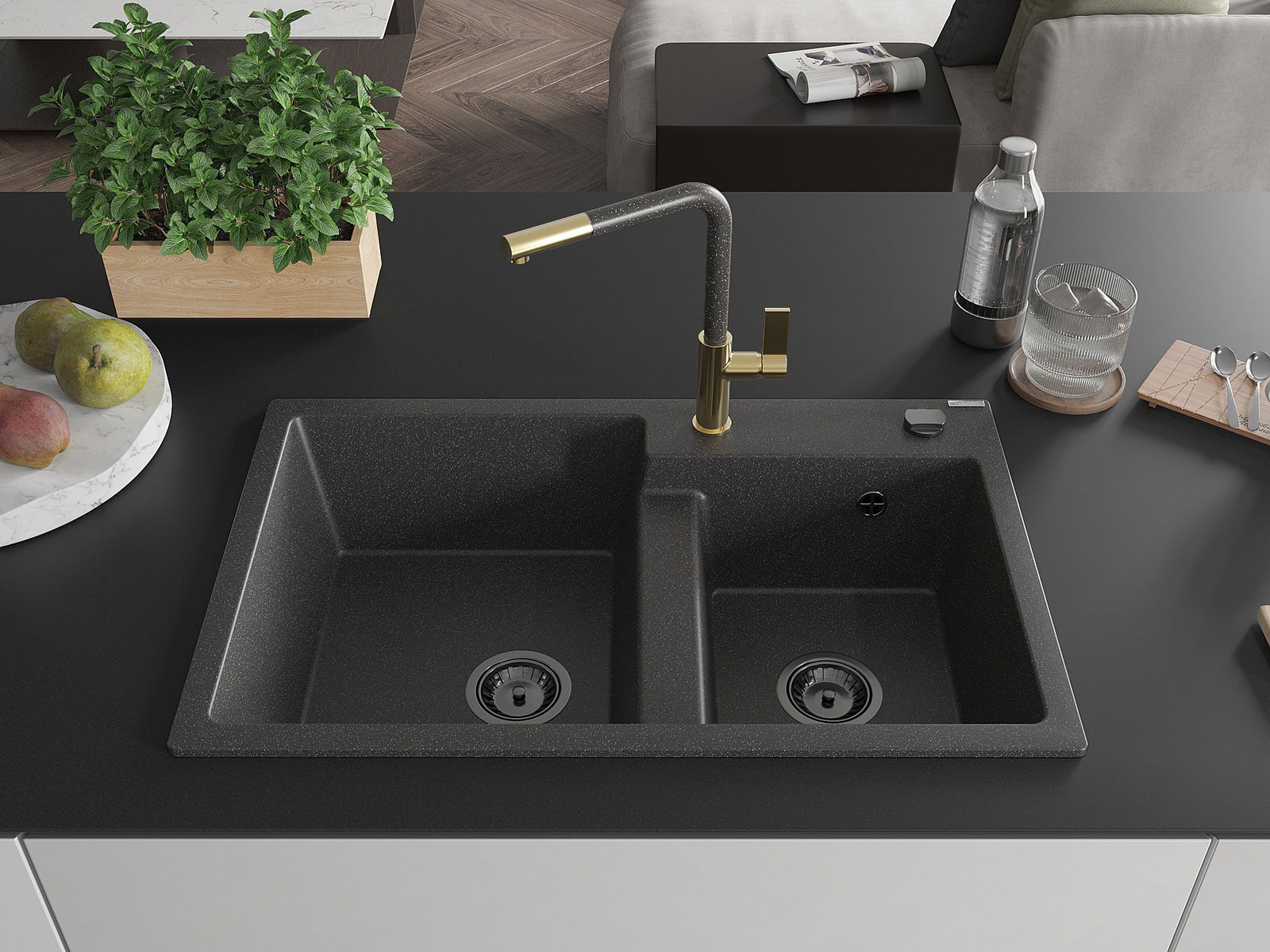 The sink is made of high quality granite. It is an elegant and, above all, practical complement to every kitchen, regardless of its style. High quality and granite durability ensure many years of use.