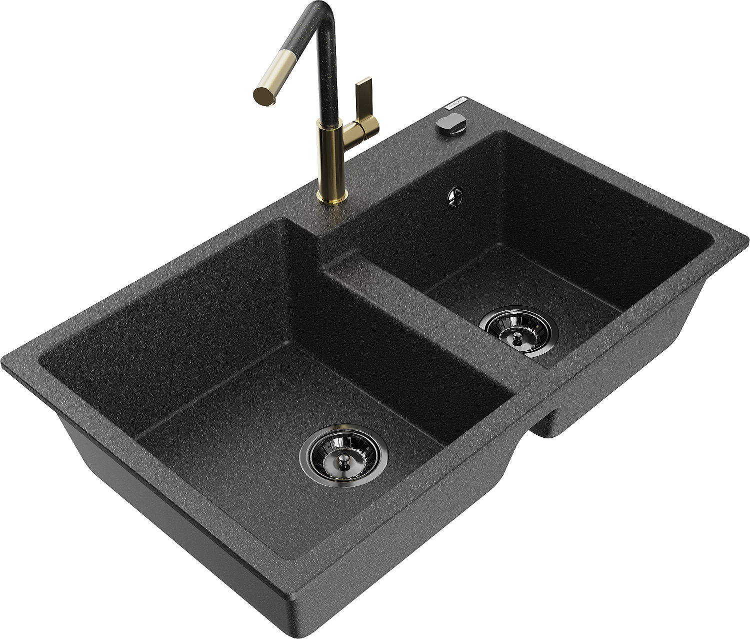 Mexen Tomas granite double kitchen sink with Flora kitchen tap, speckled black - 6516-76-670401-75-B