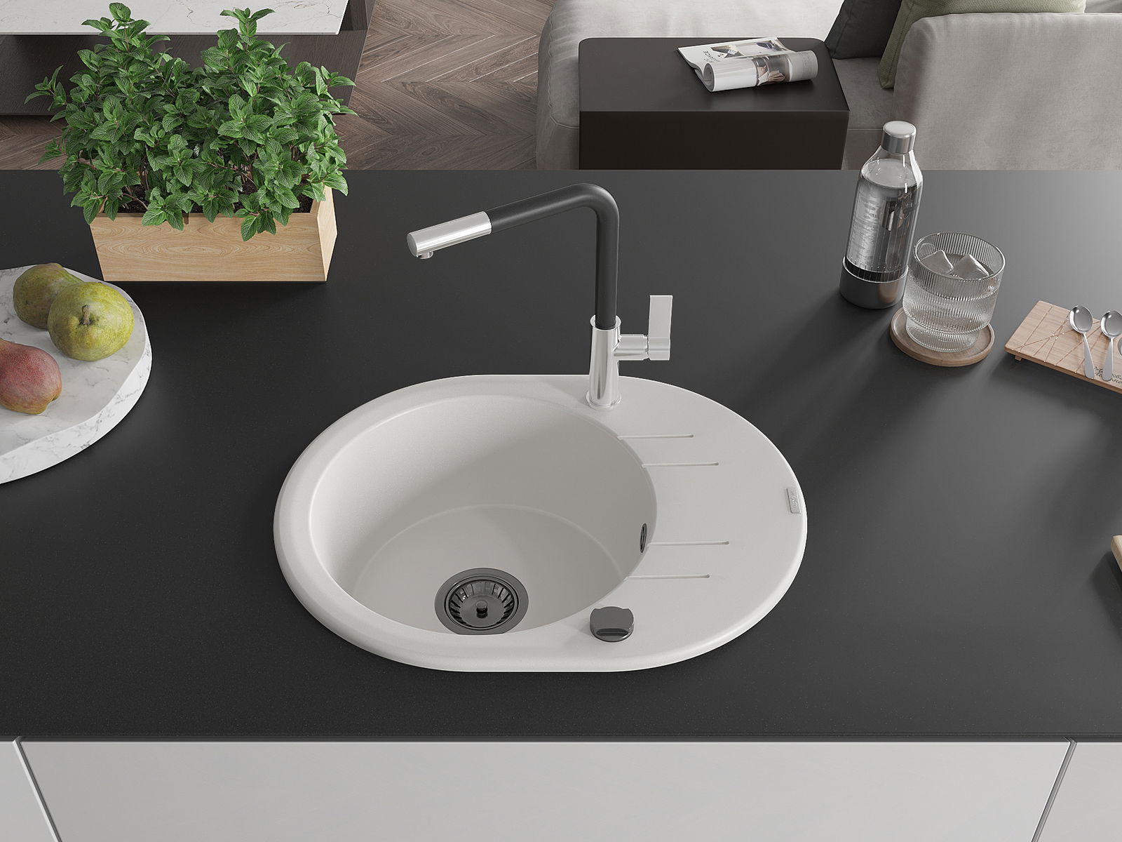 The surface of the sink is resistant to stains and discoloration, thanks to which it is easy to clean and retains its color for a long time. Aesthetic and practically complementing every kitchen.