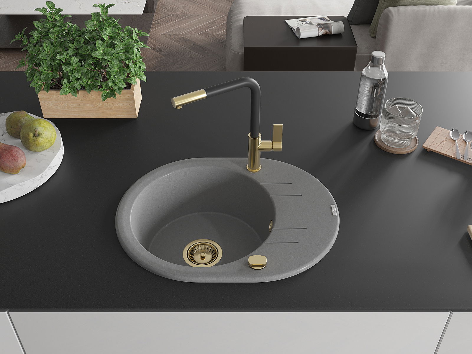 The sink is made of high quality granite. It is an elegant and, above all, practical complement to every kitchen, regardless of its style. High quality and granite durability ensure many years of use.