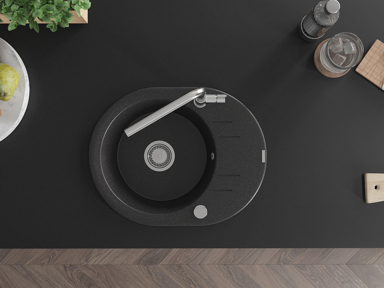 The sink is made of high quality granite. It is an elegant and, above all, practical complement to every kitchen, regardless of its style. High quality and granite durability ensure many years of use.