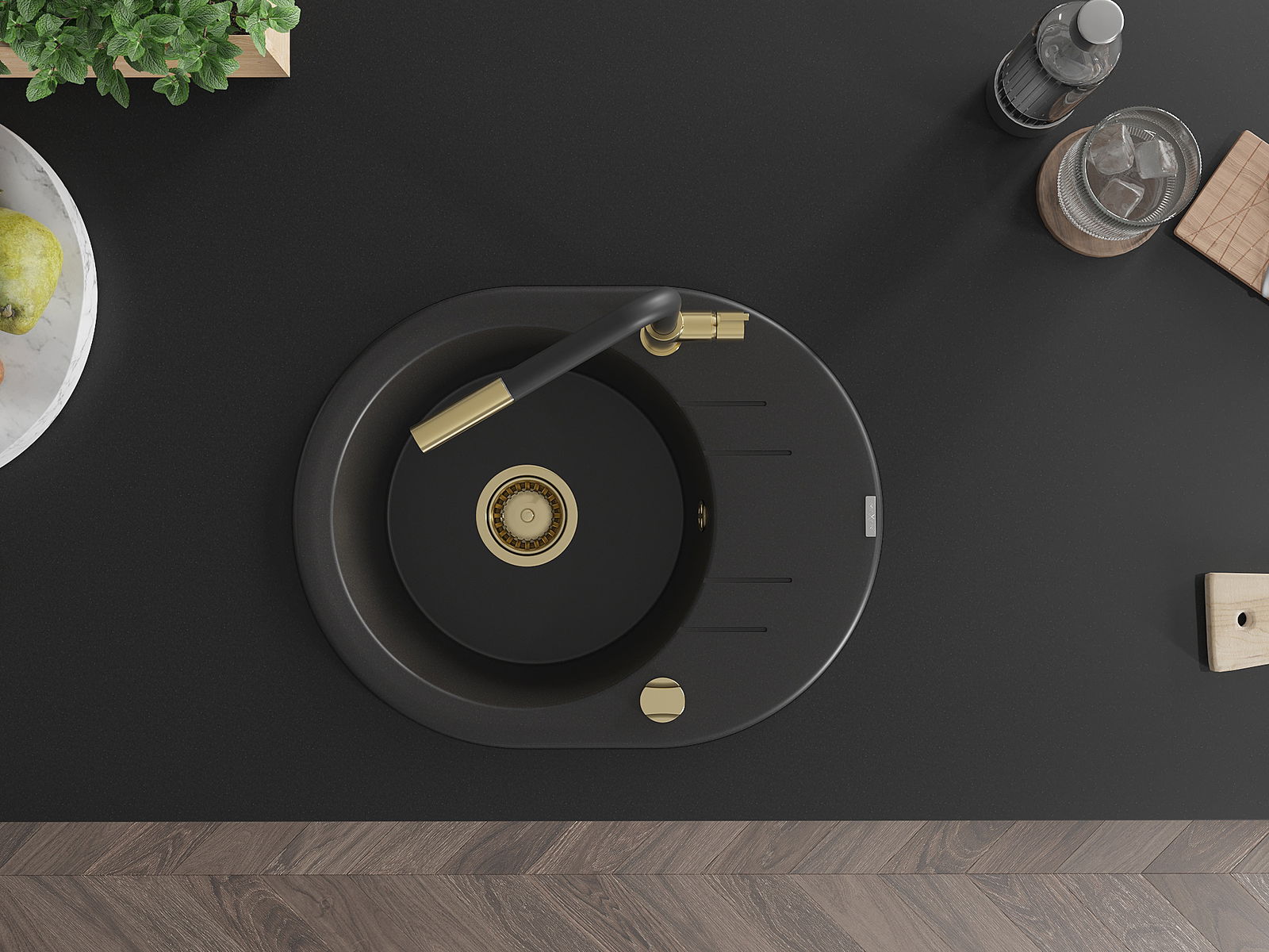 The sink is made of high quality granite. It is an elegant and, above all, practical complement to every kitchen, regardless of its style. High quality and granite durability ensure many years of use.