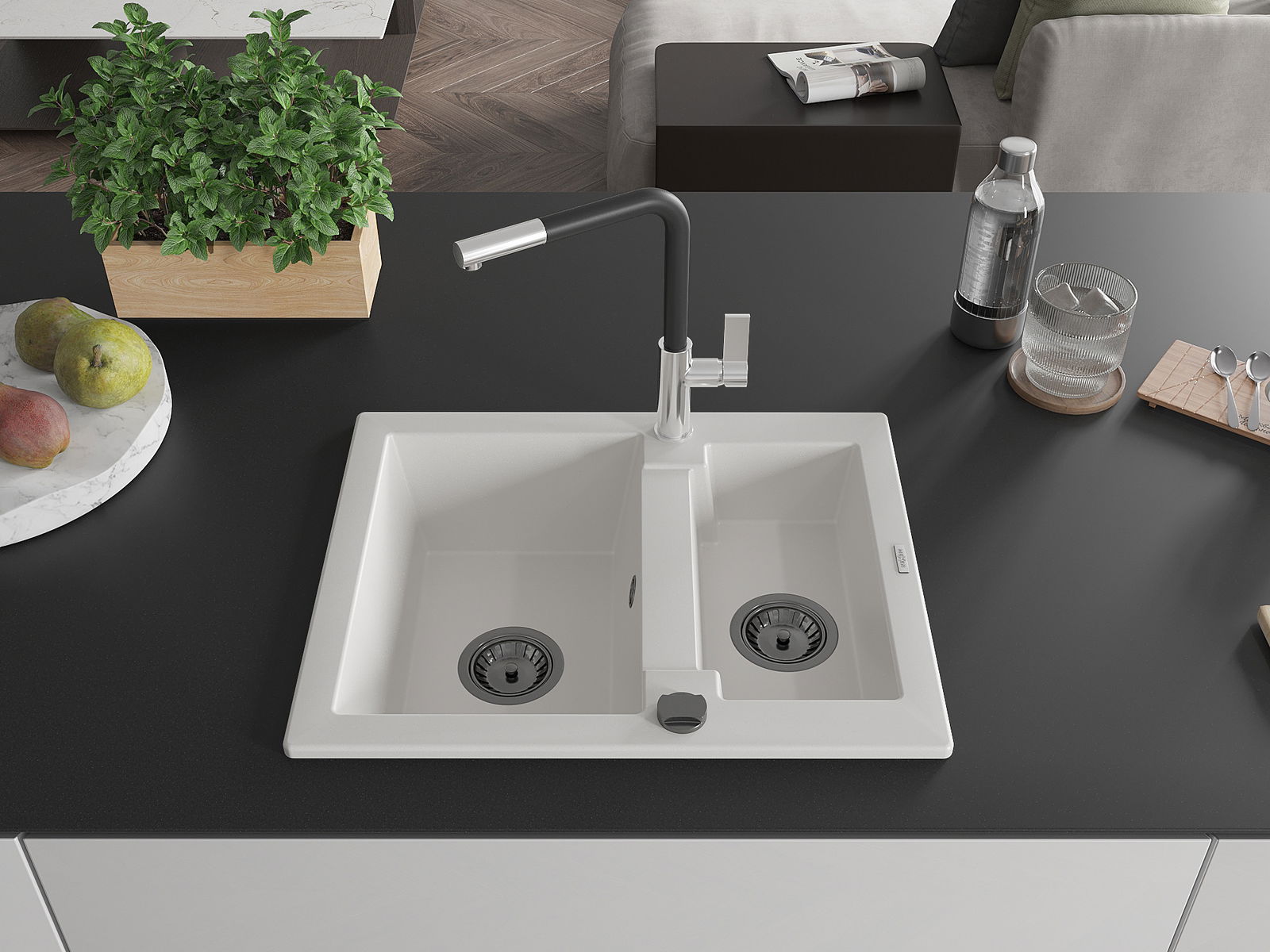 The sink is made of high quality granite. It is an elegant and, above all, practical complement to every kitchen, regardless of its style. High quality and granite durability ensure many years of use.