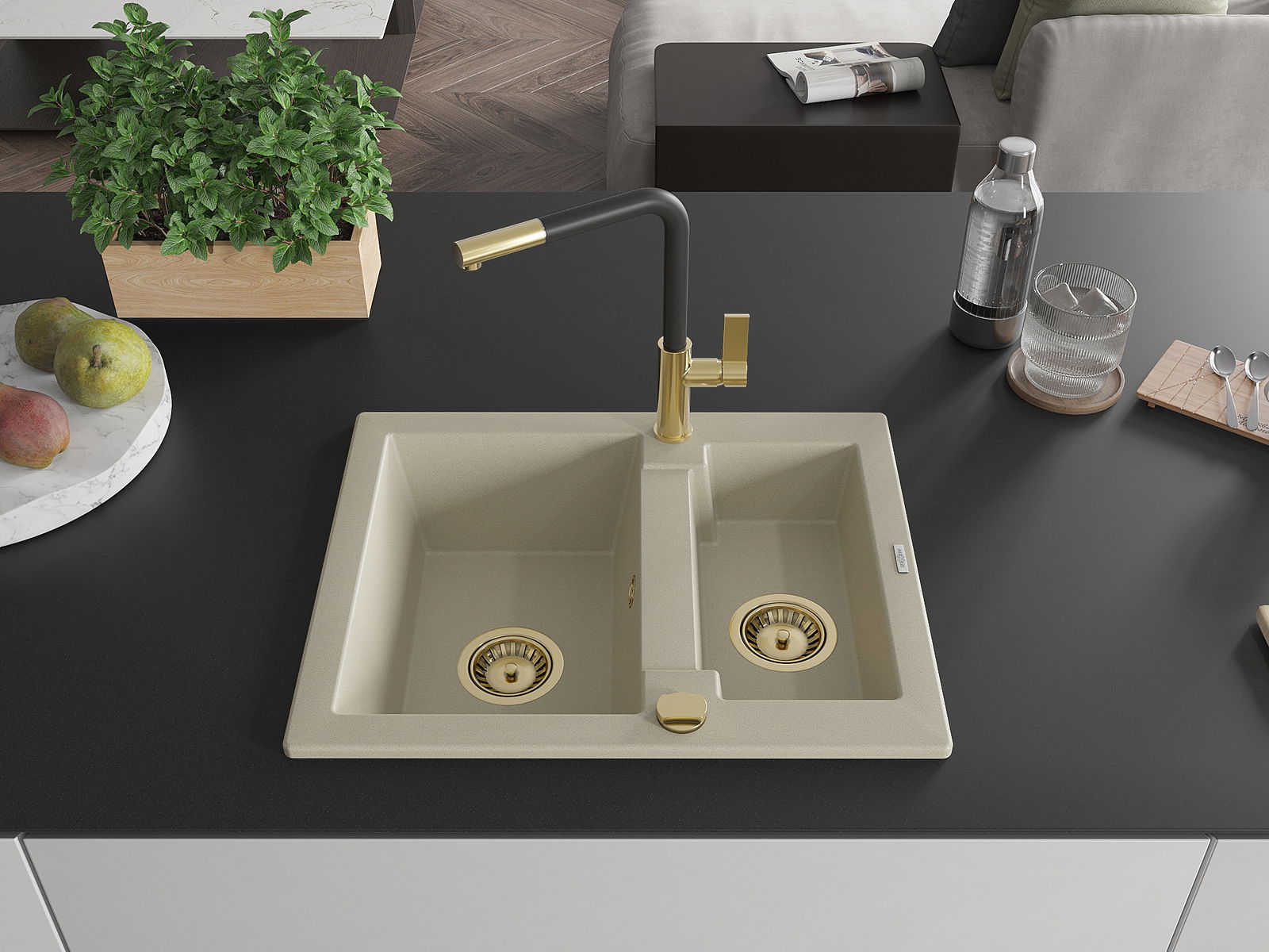 The sink is made of high quality granite. It is an elegant and, above all, practical complement to every kitchen, regardless of its style. High quality and granite durability ensure many years of use.