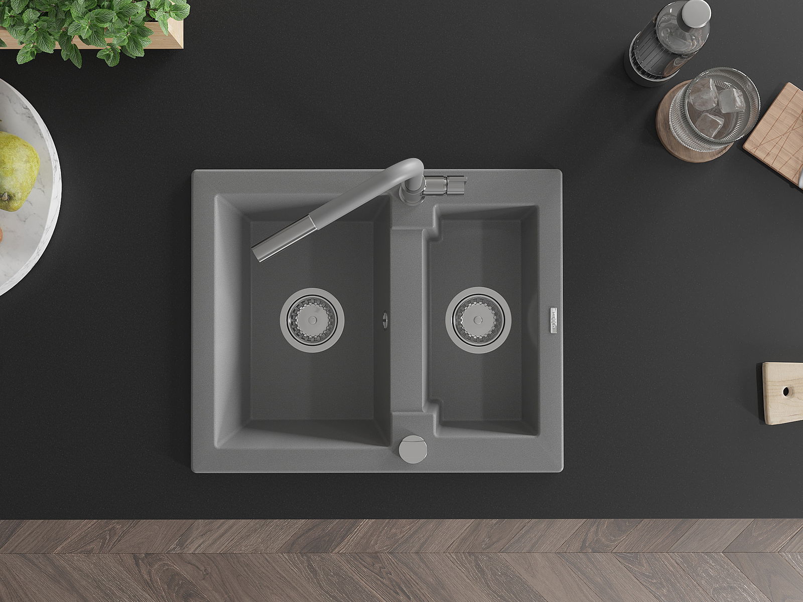 The sink is made of high quality granite. It is an elegant and, above all, practical complement to every kitchen, regardless of its style. High quality and granite durability ensure many years of use.
