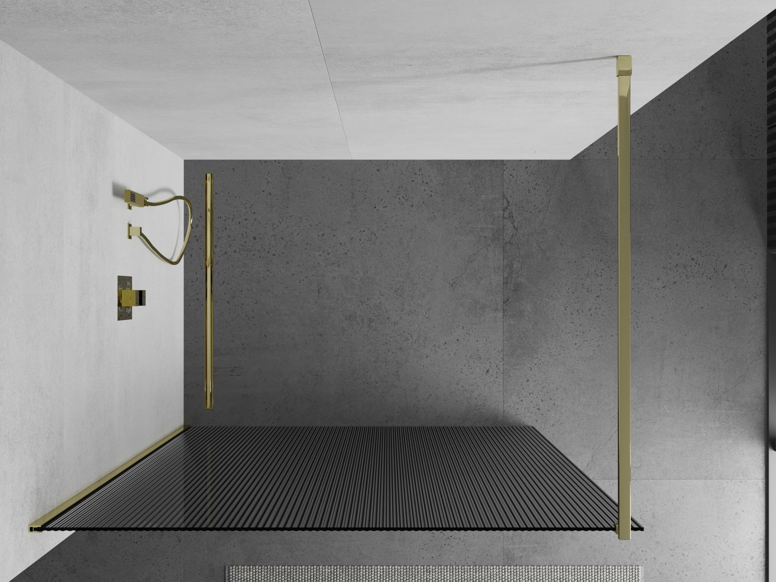 Mexen Kioto Walk-in Shower Wall 130 x 200 cm, Stripes 8 mm, Gold - 800-130-101-50-09