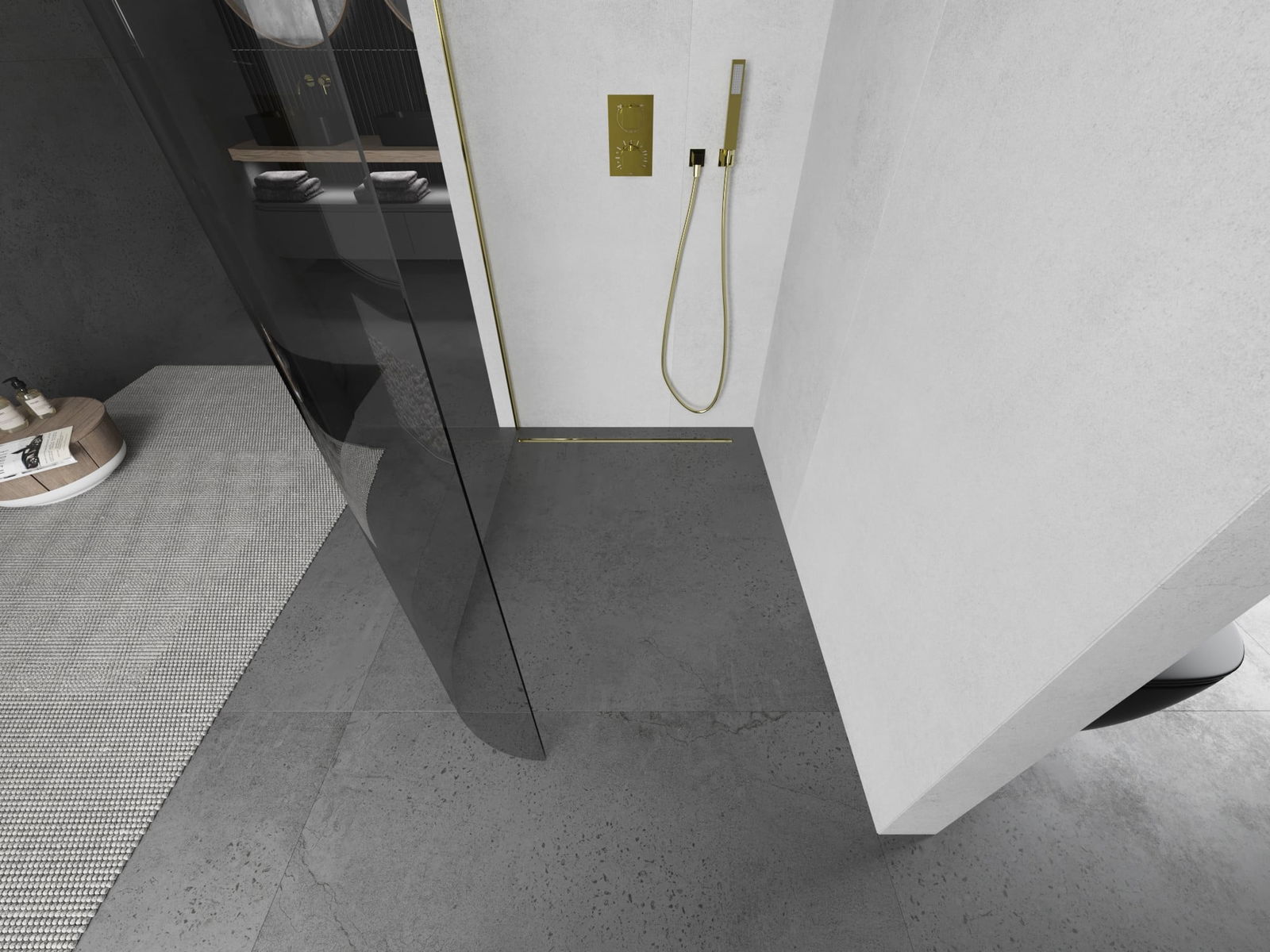 Mexen Kioto-R Rounded shower wall Walk-in 160 x 200 cm, transparent 8 mm, gold - 800-160-101-50-06