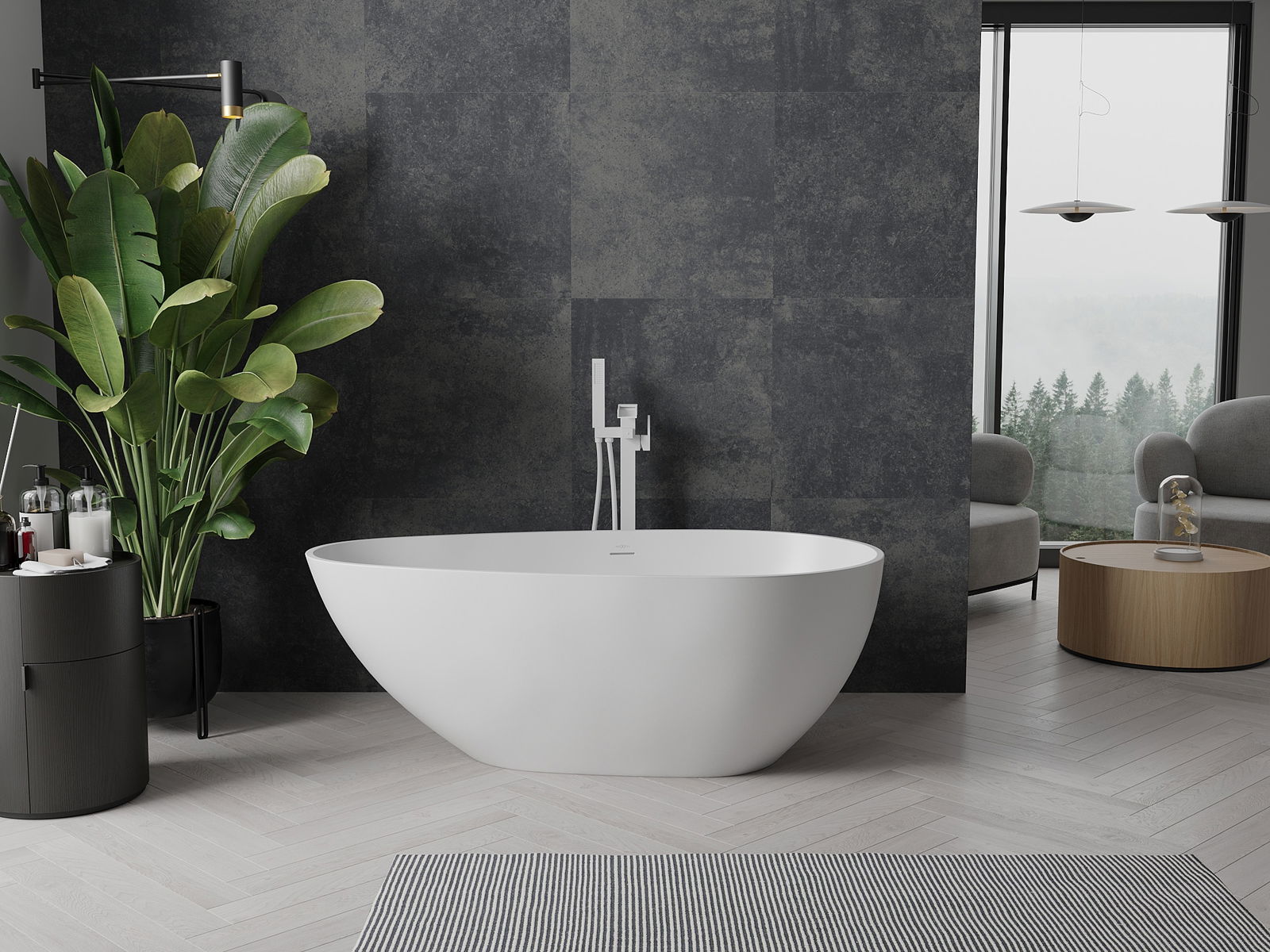The matt surface perfectly emphasises the character of the product's colour, giving it a unique and distinctive finish. The subtle structure of the matt bathtub introduces elegance to the bathroom, creating an aesthetic space.