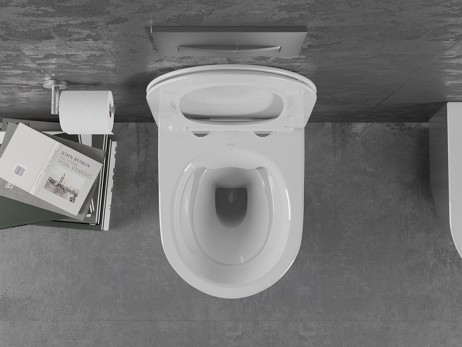 The Rimless technology ensures free water flow throughout the entire chamber, making it easier to keep the WC bowl clean