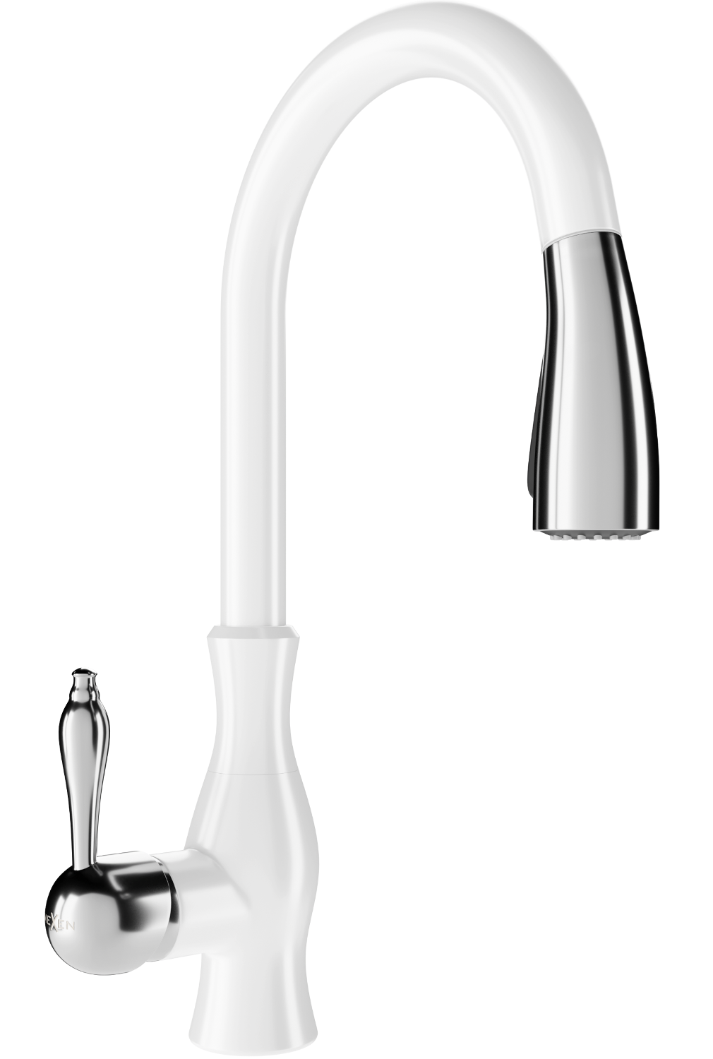 Batteries with a stretched spout are a practical solution in the kitchen. With the help of the pull -out head, we can reach each nook of the sink and large pots, wash the vegetables and fruits thoroughly, without splashing the space around the sink.
