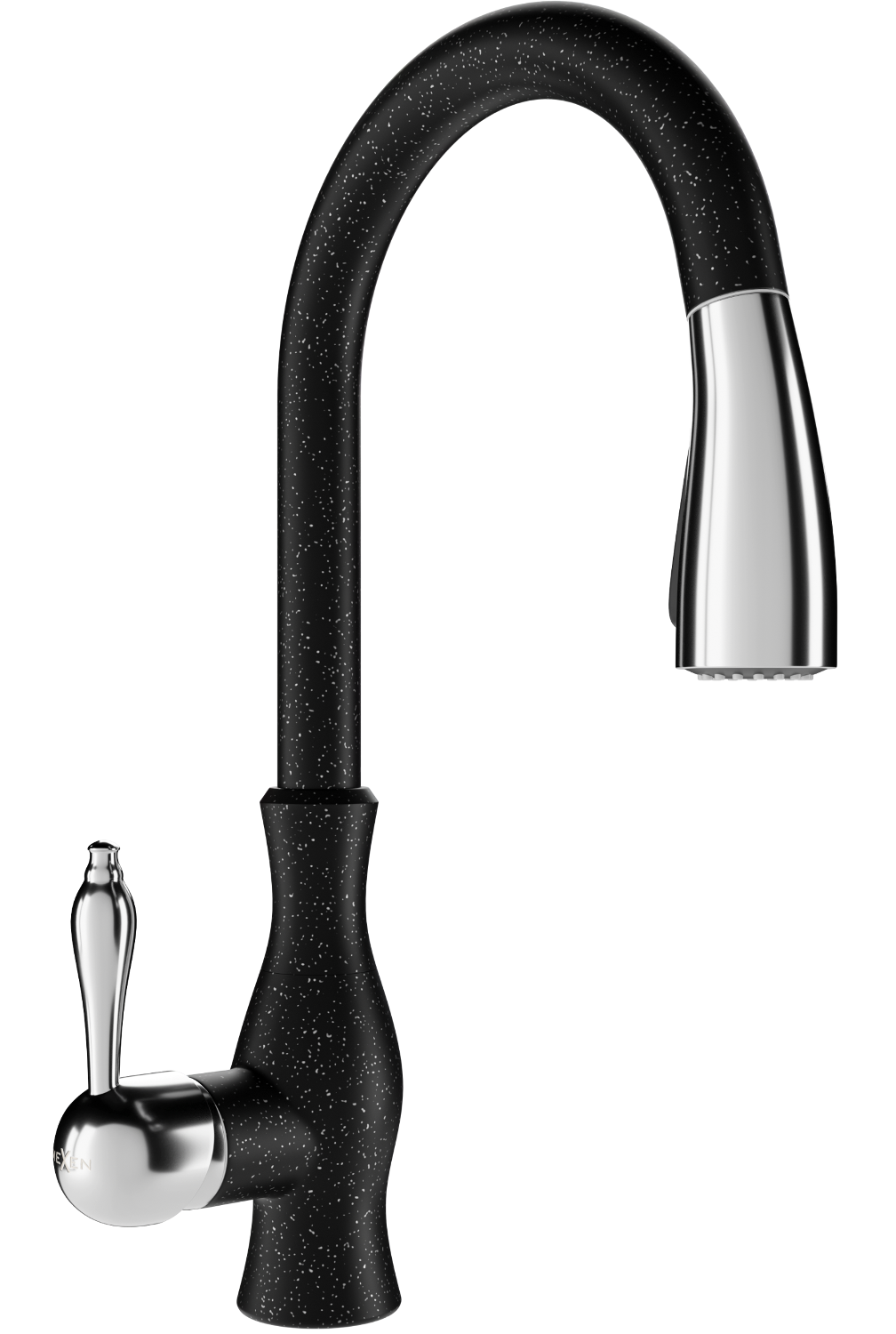 Batteries with a stretched spout are a practical solution in the kitchen. With the help of the pull -out head, we can reach each nook of the sink and large pots, wash the vegetables and fruits thoroughly, without splashing the space around the sink.