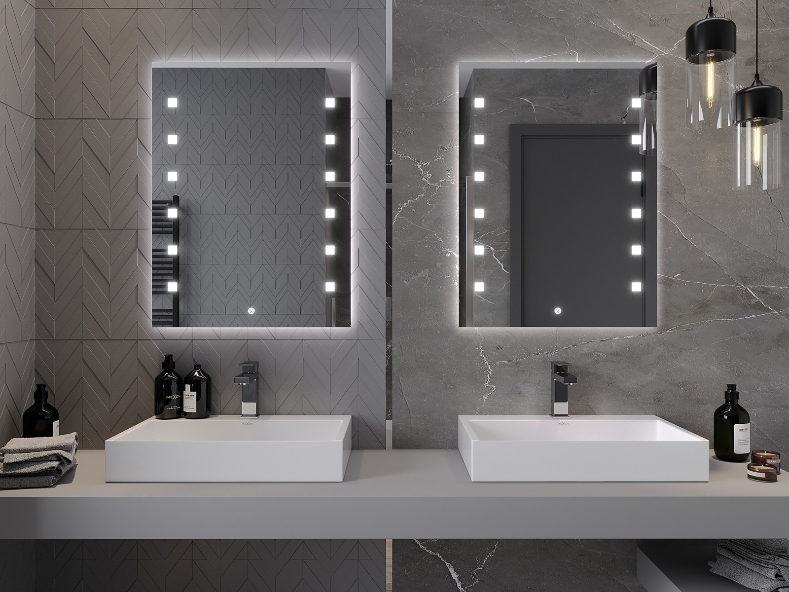 LED backlighting at the mirror is a practical element that makes daily grooming easier by providing the perfect illumination of the face. The backlighting gives the bathroom a modern finish, highlighting its elegant decor.