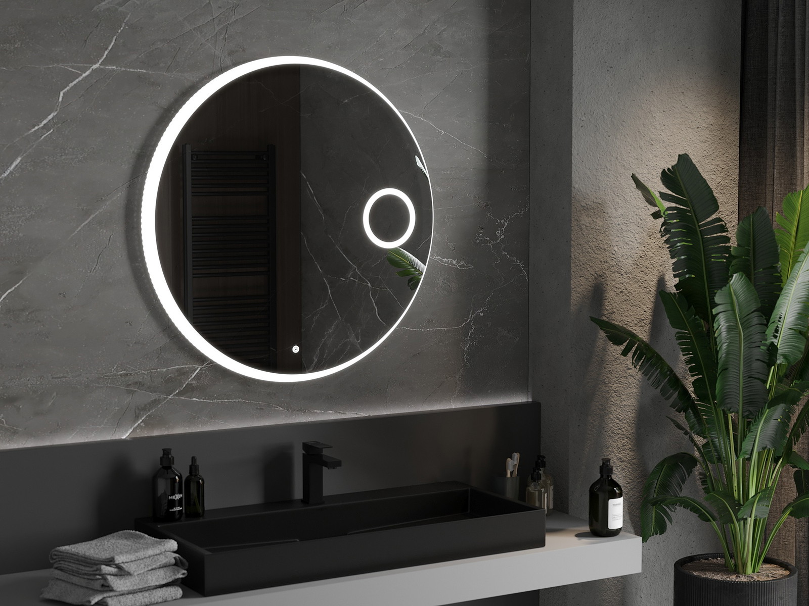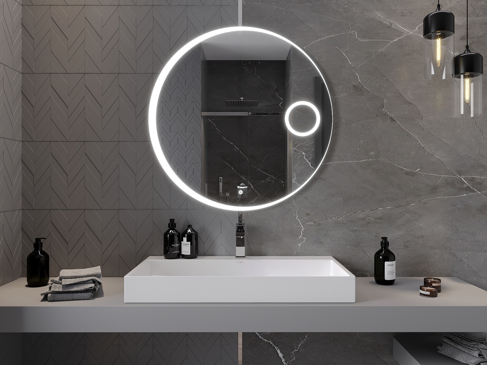 The product features a mirror with 3x magnification, flush with the mirror surface. It allows for quick and precise makeup application and daily facial care with even greater ease. An ideal solution for those who value precision.