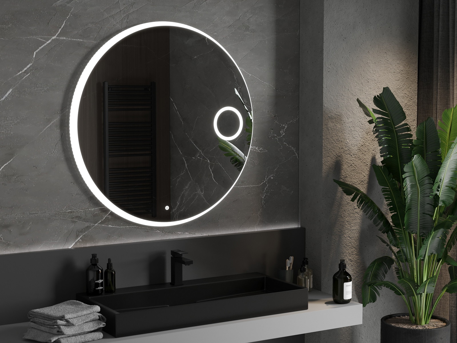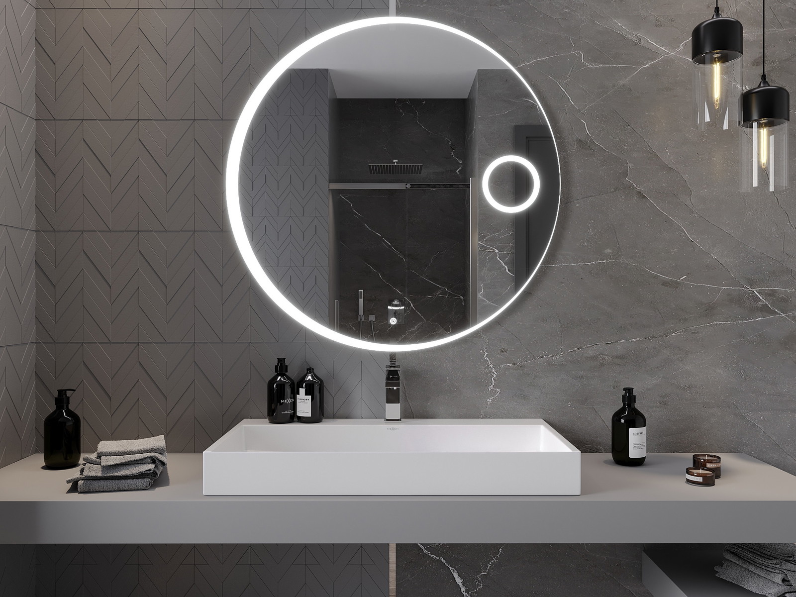 The product features a mirror with 3x magnification, flush with the mirror surface. It allows for quick and precise makeup application and daily facial care with even greater ease. An ideal solution for those who value precision.