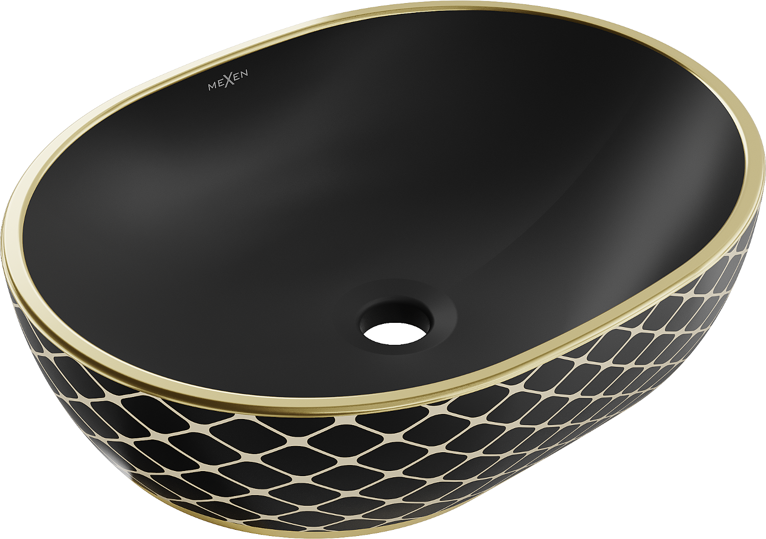 Mexen Viki countertop washbasin 48 x 35 cm, black matte/golden grid pattern - 21054879