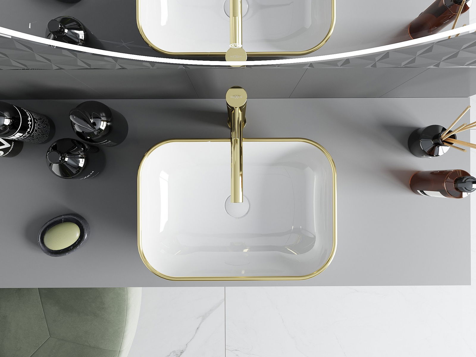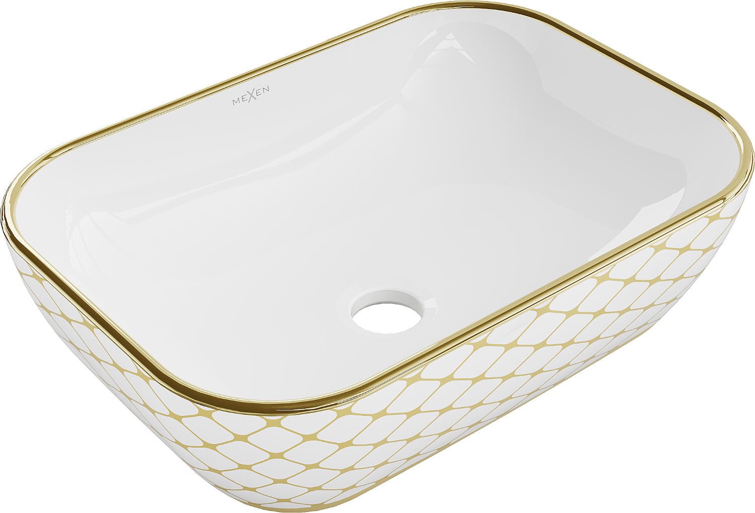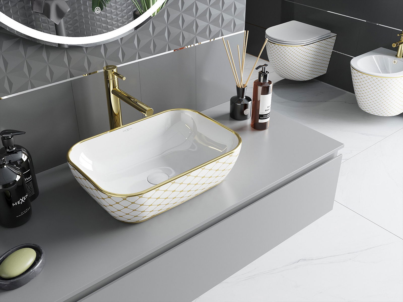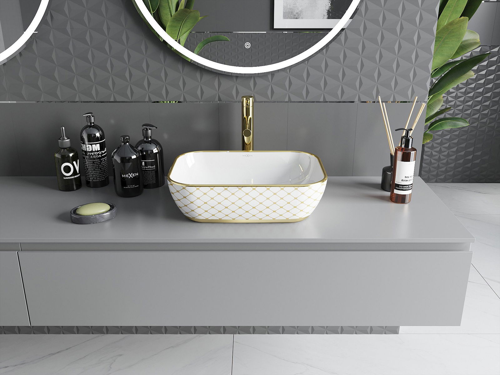 Mexen Rita countertop washbasin 45 x 32 cm, white/gold check pattern - 21084509