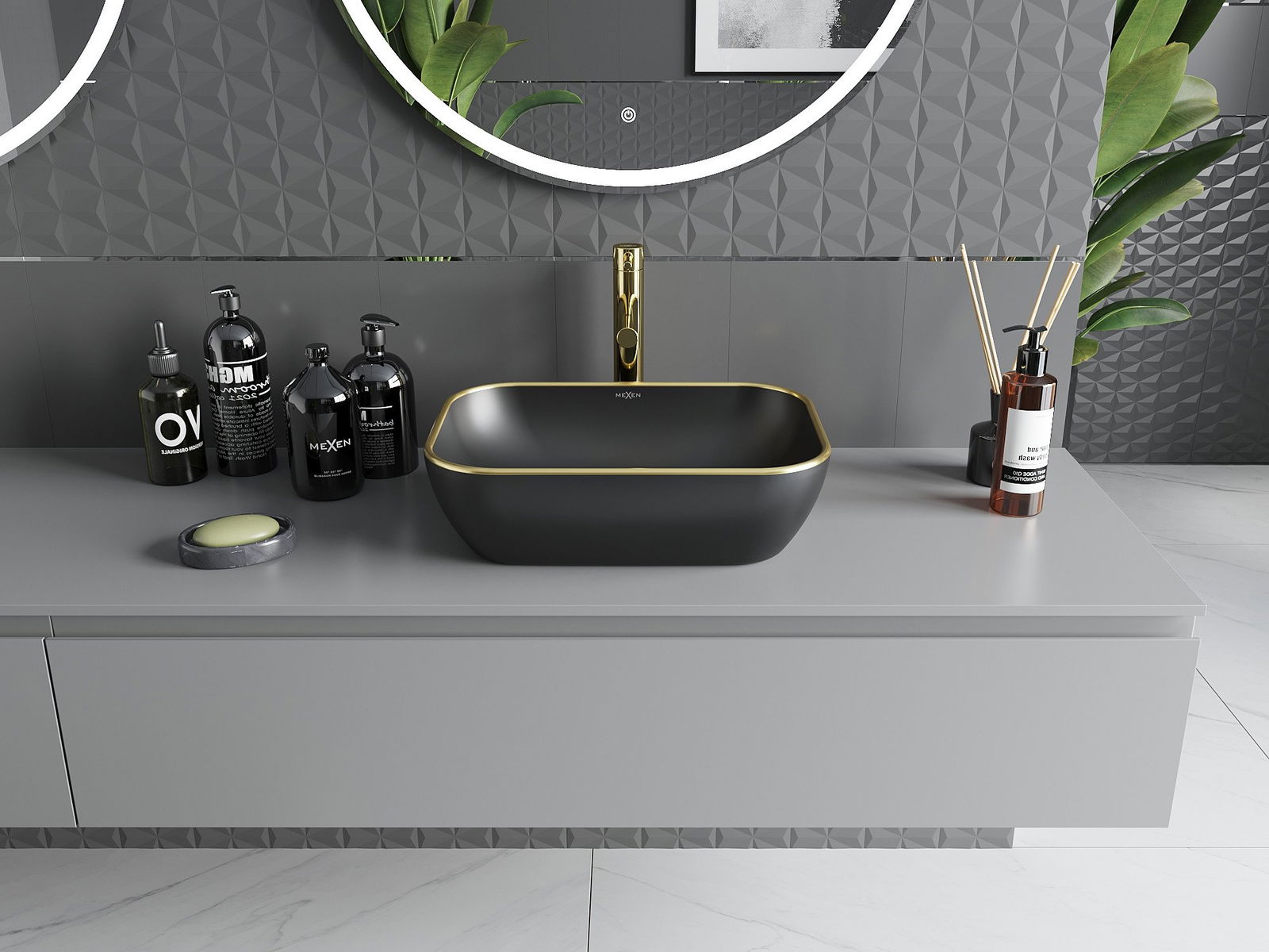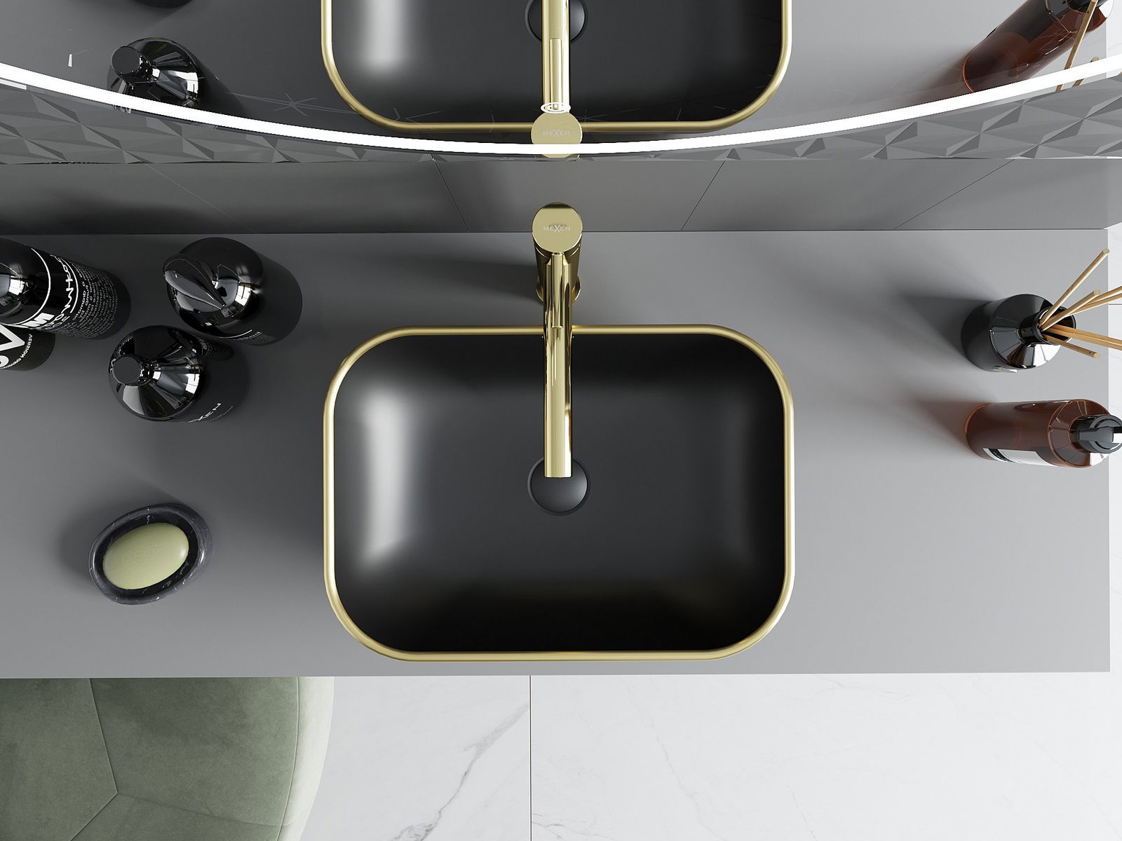 Mexen Rita countertop washbasin 45 x 32 cm, black matte/gold rim - 21084575