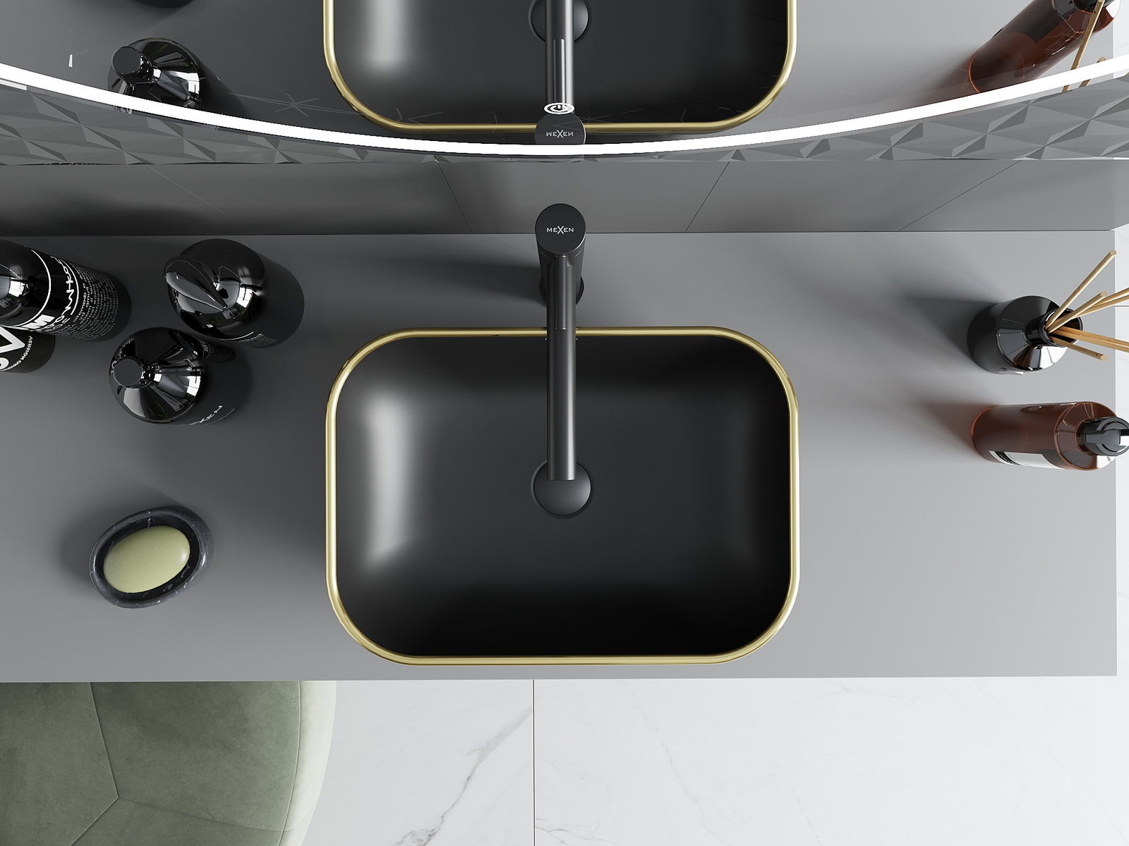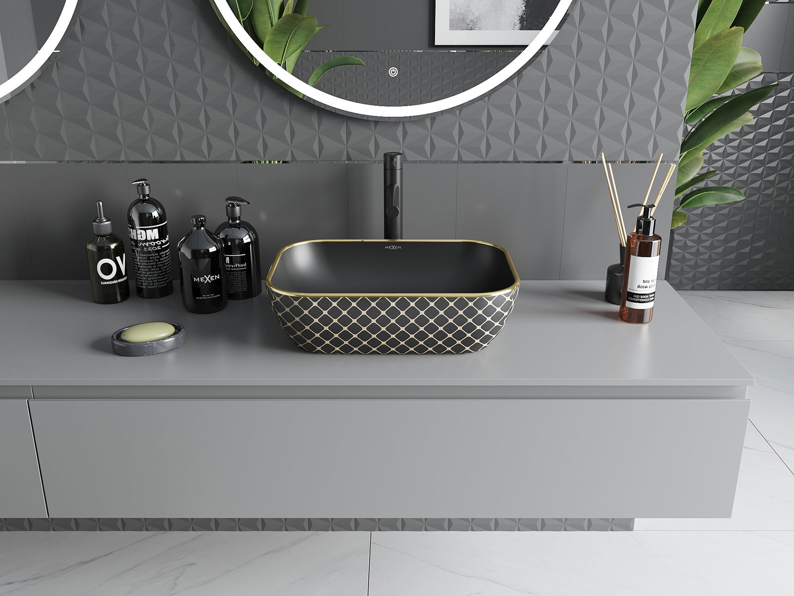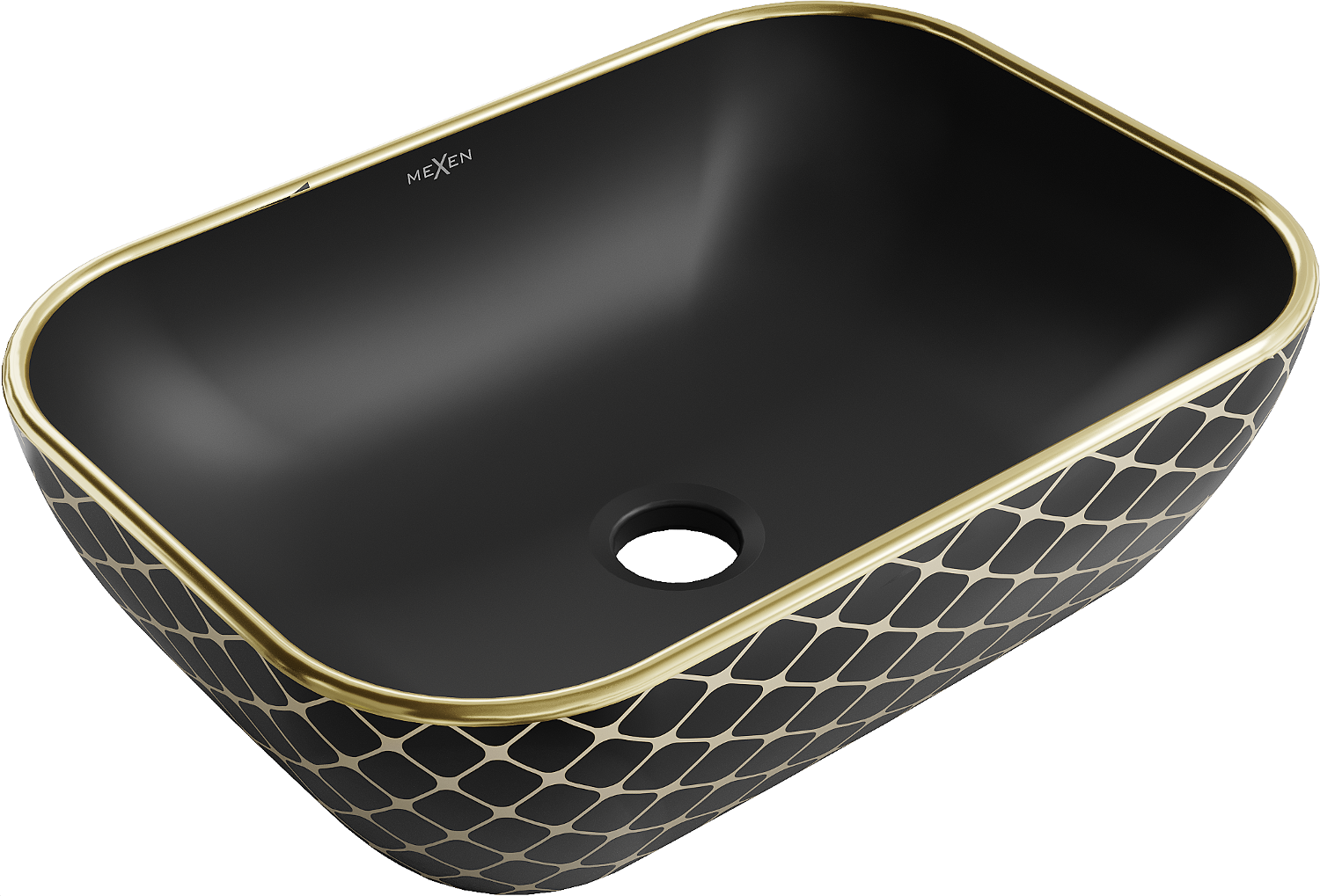 Mexen Rita countertop washbasin 45 x 32 cm, black matt/gold check pattern - 21084579