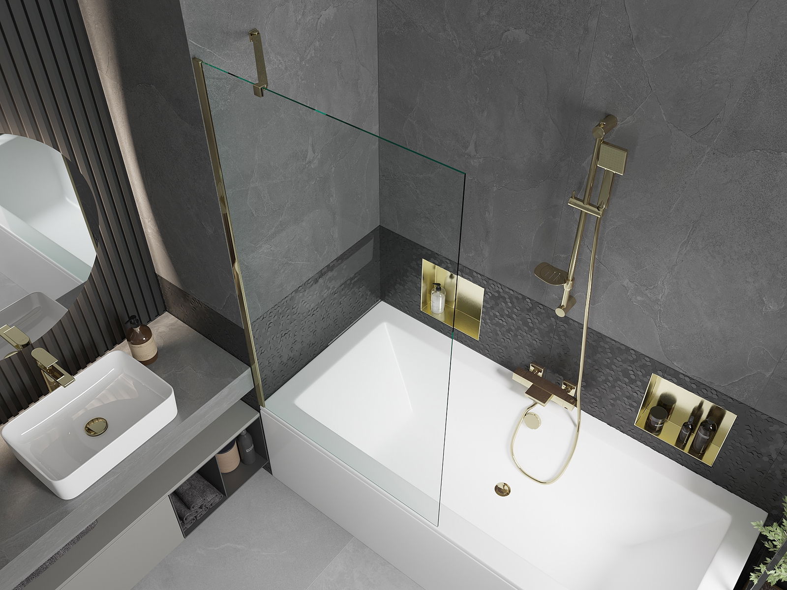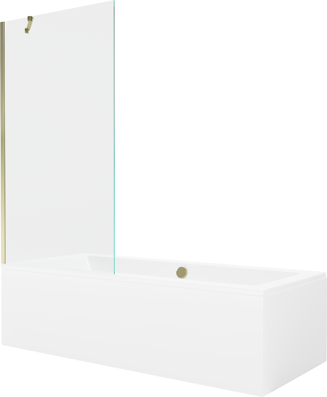 Mexen Cube rectangular bathtub 170 x 80 cm with casing and 1-wing screen 90 cm, transparent, gold - 550517080X9509000050