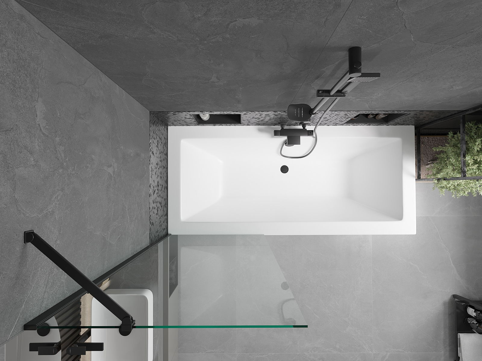 Mexen Cube rectangular bath 170 x 80 cm with casing and 1-wing screen 70 cm, transparent, black - 550517080X9507000070