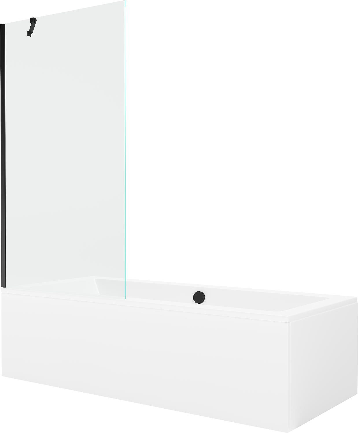 Mexen Cube rectangular bath 170 x 80 cm with casing and 1-wing screen 90 cm, transparent, black - 550517080X9509000070