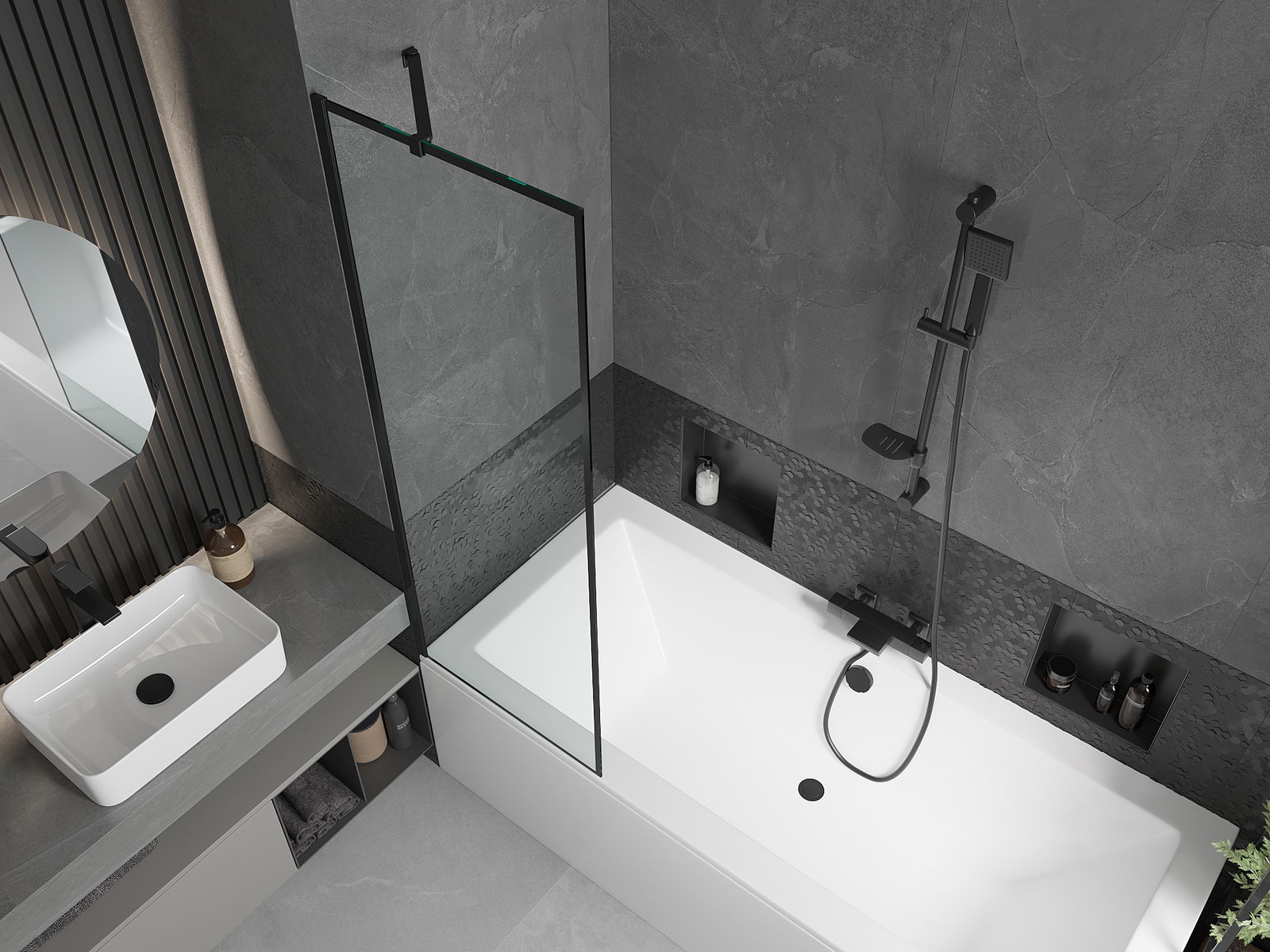 Mexen Cube rectangular bathtub 180 x 80 cm with casing and single-panel screen 60 cm, black pattern - 550518080X9506007070