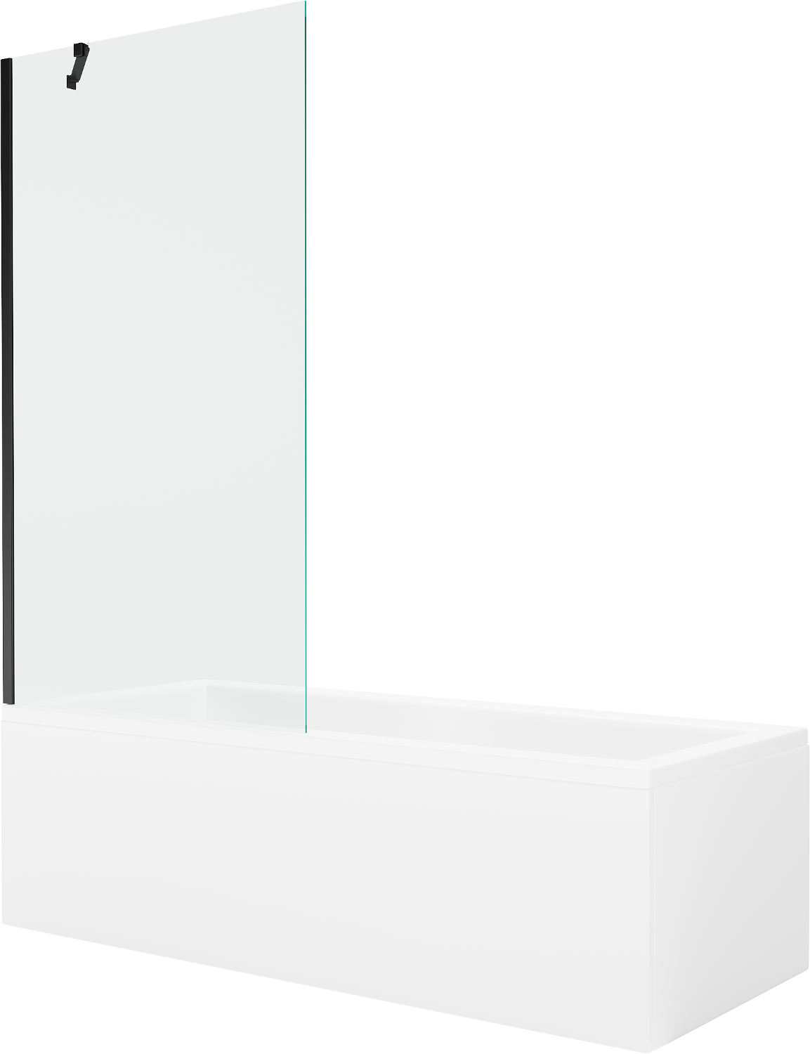 Mexen Cubik rectangular bathtub 150 x 70 cm with casing and 1-wing screen 90 cm, transparent, black - 550315070X9509000070