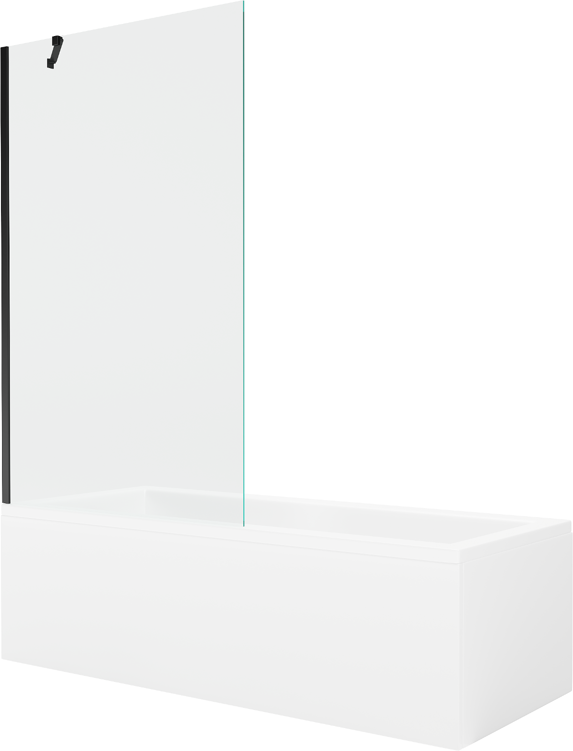 Mexen Cubik rectangular bath 150 x 70 cm with panel and 1-wing screen 100 cm, transparent, black - 550315070X9510000070