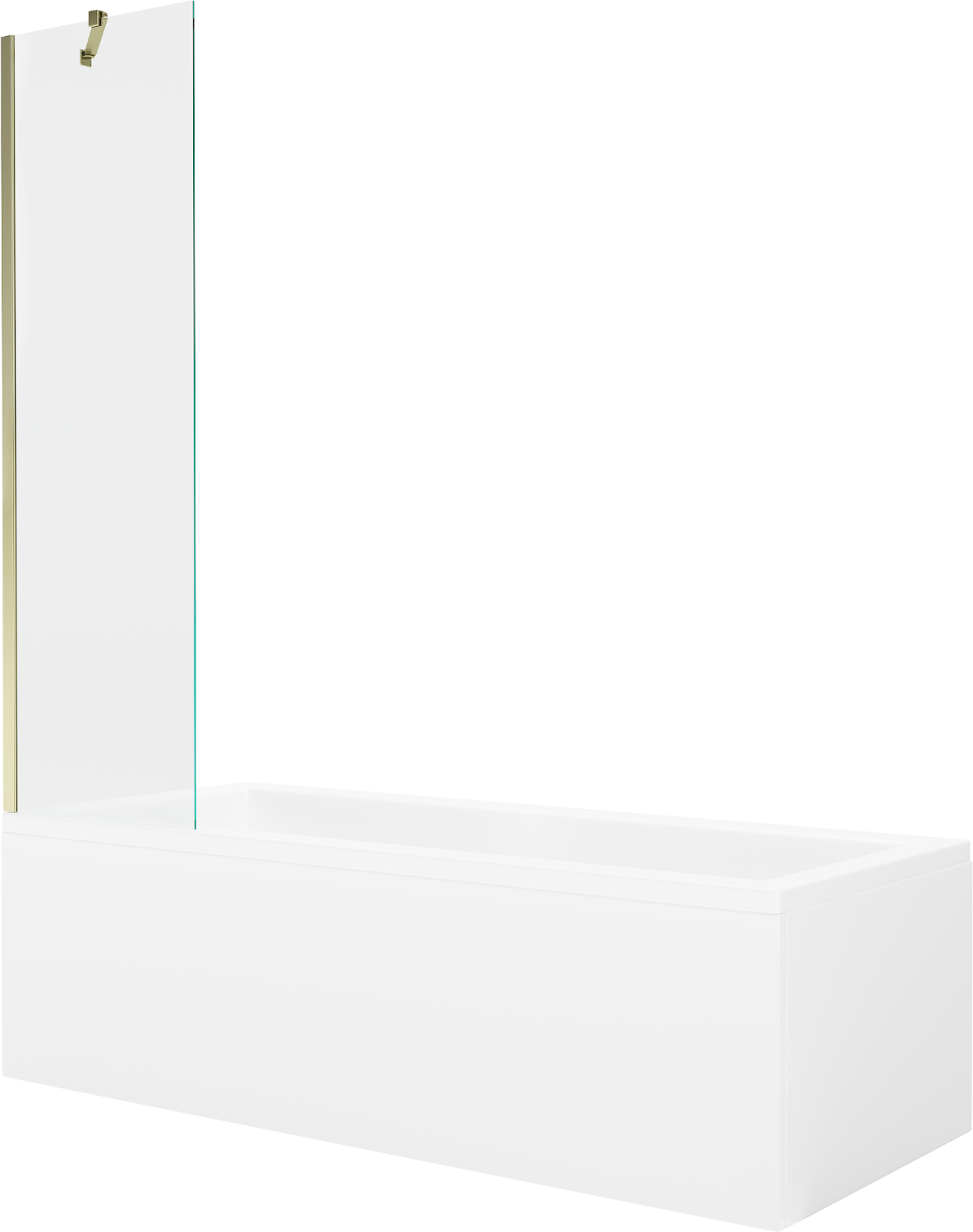 Mexen Cubik rectangular bathtub 160 x 70 cm with casing and 1-wing screen 50 cm, transparent, gold - 550316070X9505000050