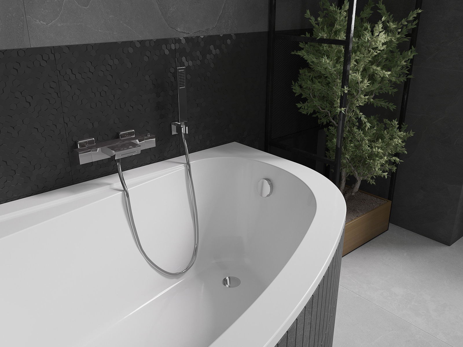 The bathtub is equipped with adjustable legs that allow it to level it even on an uneven surface. A practical solution that ensures greater stability and safety during use and ease of installation.
