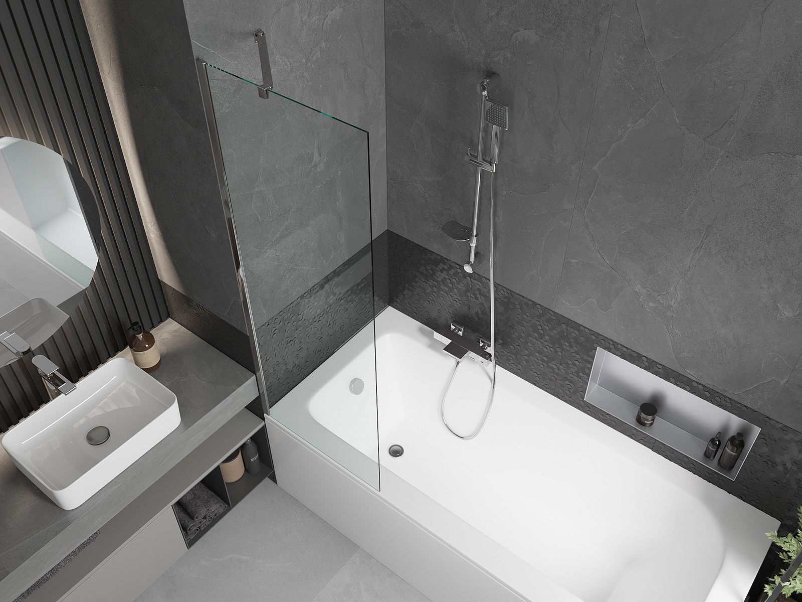 Mexen Vega rectangular bath 160 x 70 cm with enclosure and single-panel screen 60 cm, transparent, chrome - 550116070X950600000?