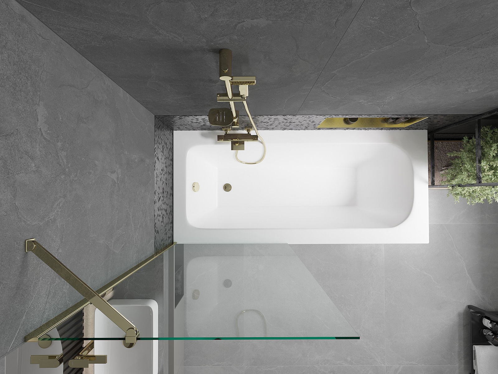 Mexen Vega rectangular bathtub 180 x 80 cm with casing and 1-wing screen 80 cm, transparent, gold - 550118080X9508000050