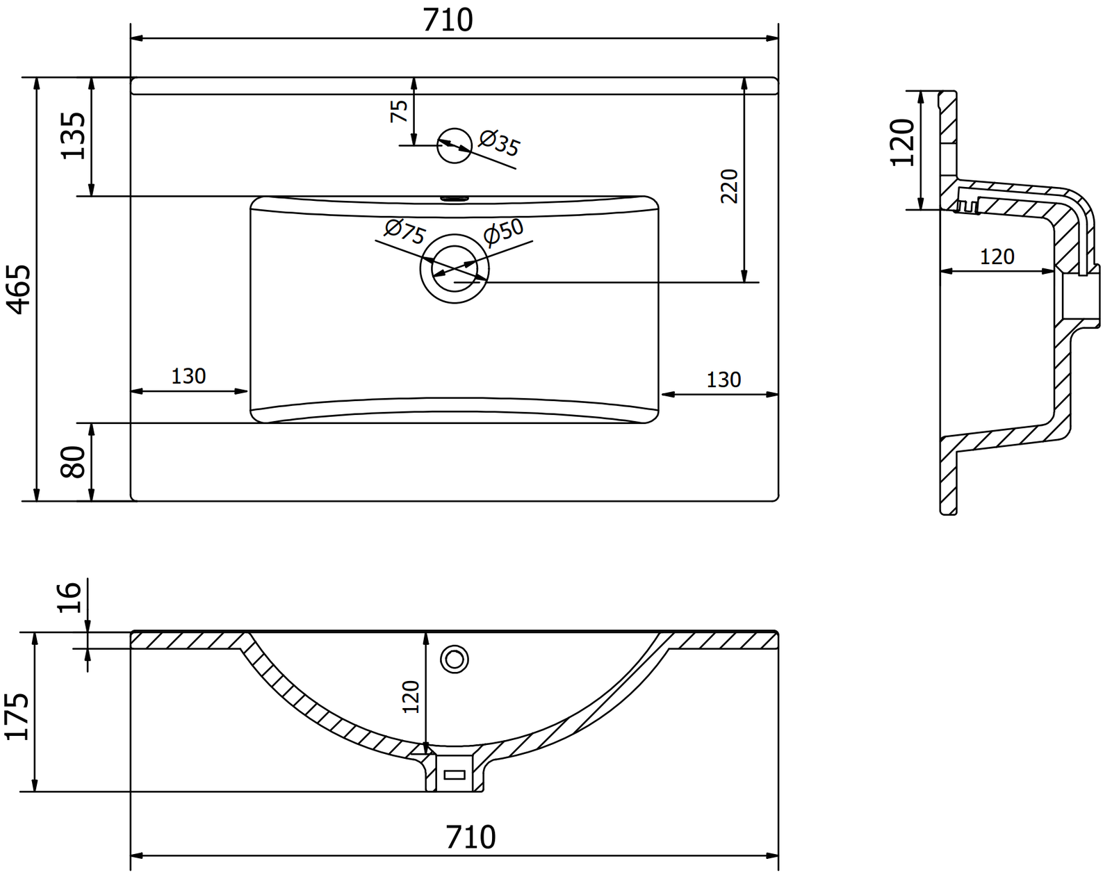Overflow hole: Yes