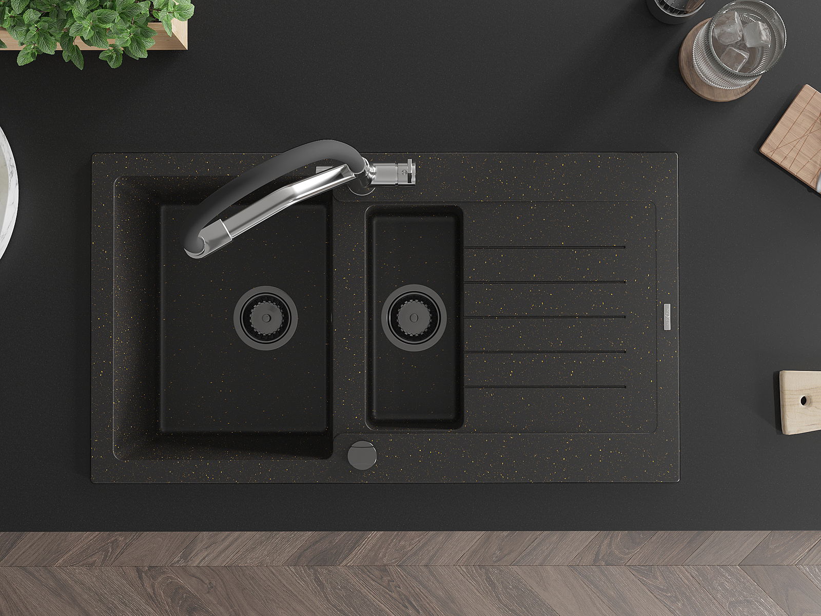 The sink is made of high quality granite. It is an elegant and, above all, practical complement to every kitchen, regardless of its style. High quality and granite durability ensure many years of use.