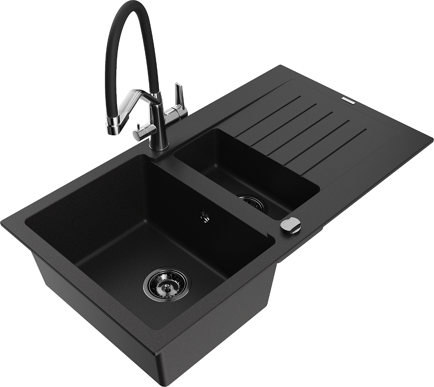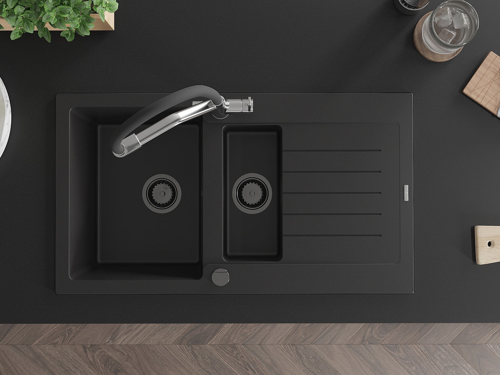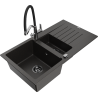 Mexen Matias granite sink 1.5-basin with drainer and Duo kitchen tap, black - 6502-77-671701-07-B