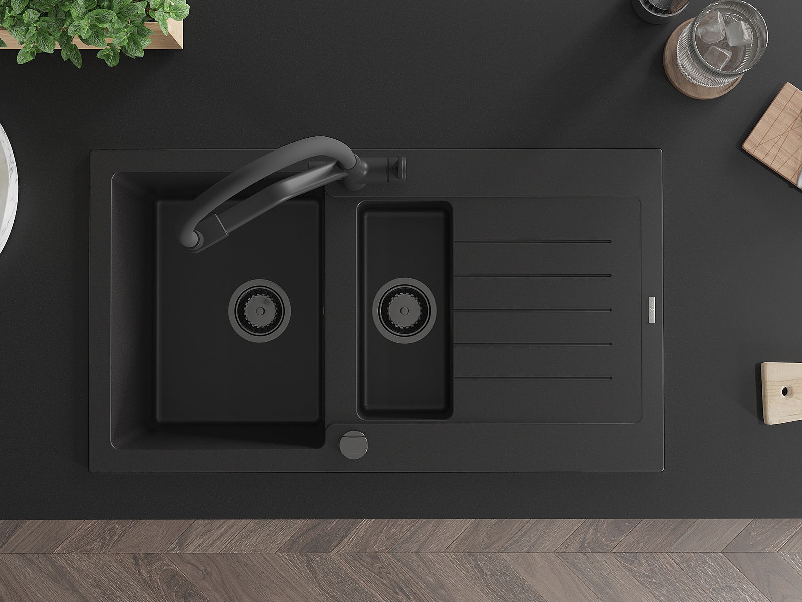 The sink is made of high quality granite. It is an elegant and, above all, practical complement to every kitchen, regardless of its style. High quality and granite durability ensure many years of use.