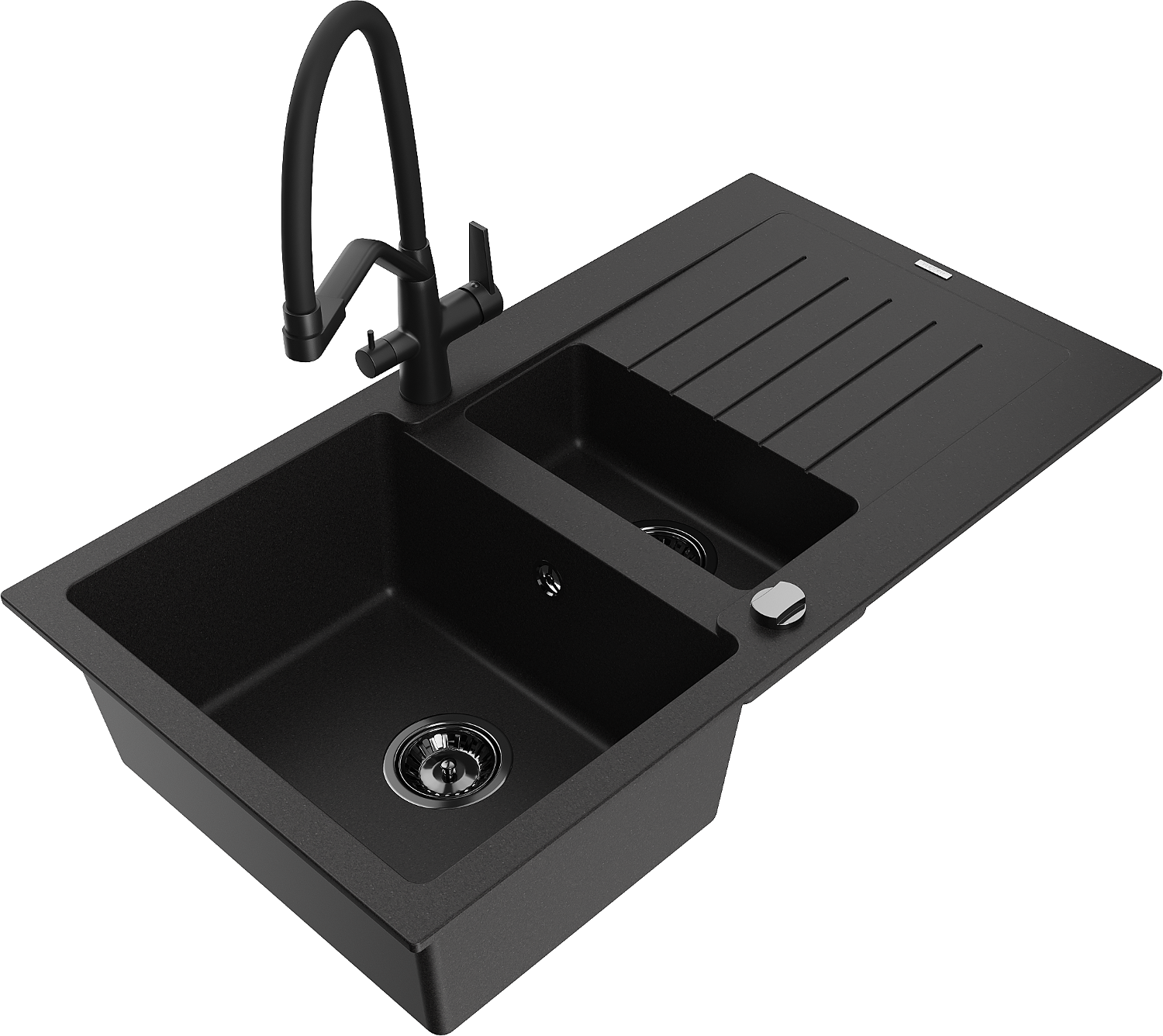 Mexen Matias 1.5-bowl granite kitchen sink with drainer and Duo tap, black - 6502-77-671701-70-B