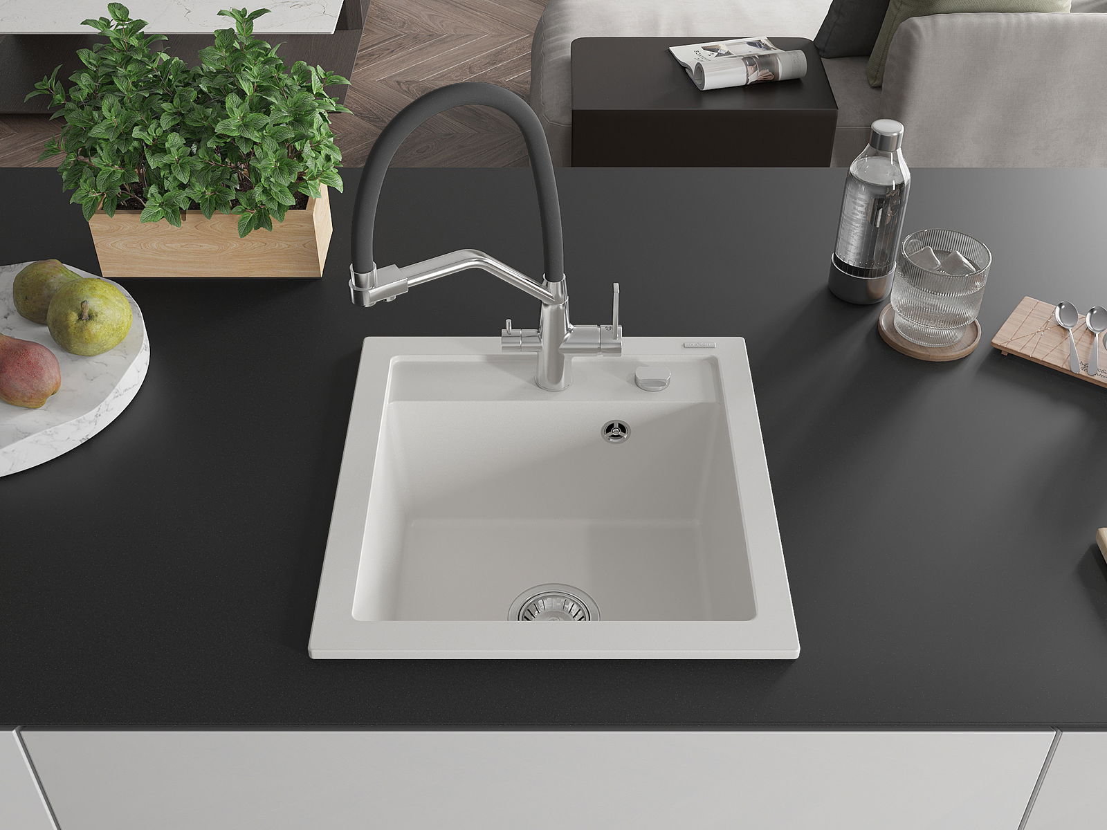 The sink is made of high quality granite. It is an elegant and, above all, practical complement to every kitchen, regardless of its style. High quality and granite durability ensure many years of use.