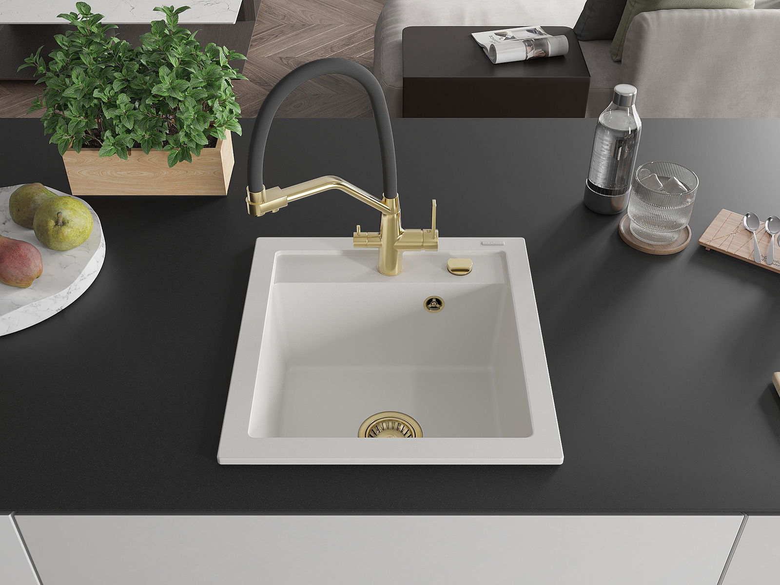 The surface of the sink is resistant to stains and discoloration, thanks to which it is easy to clean and retains its color for a long time. Aesthetic and practically complementing every kitchen.