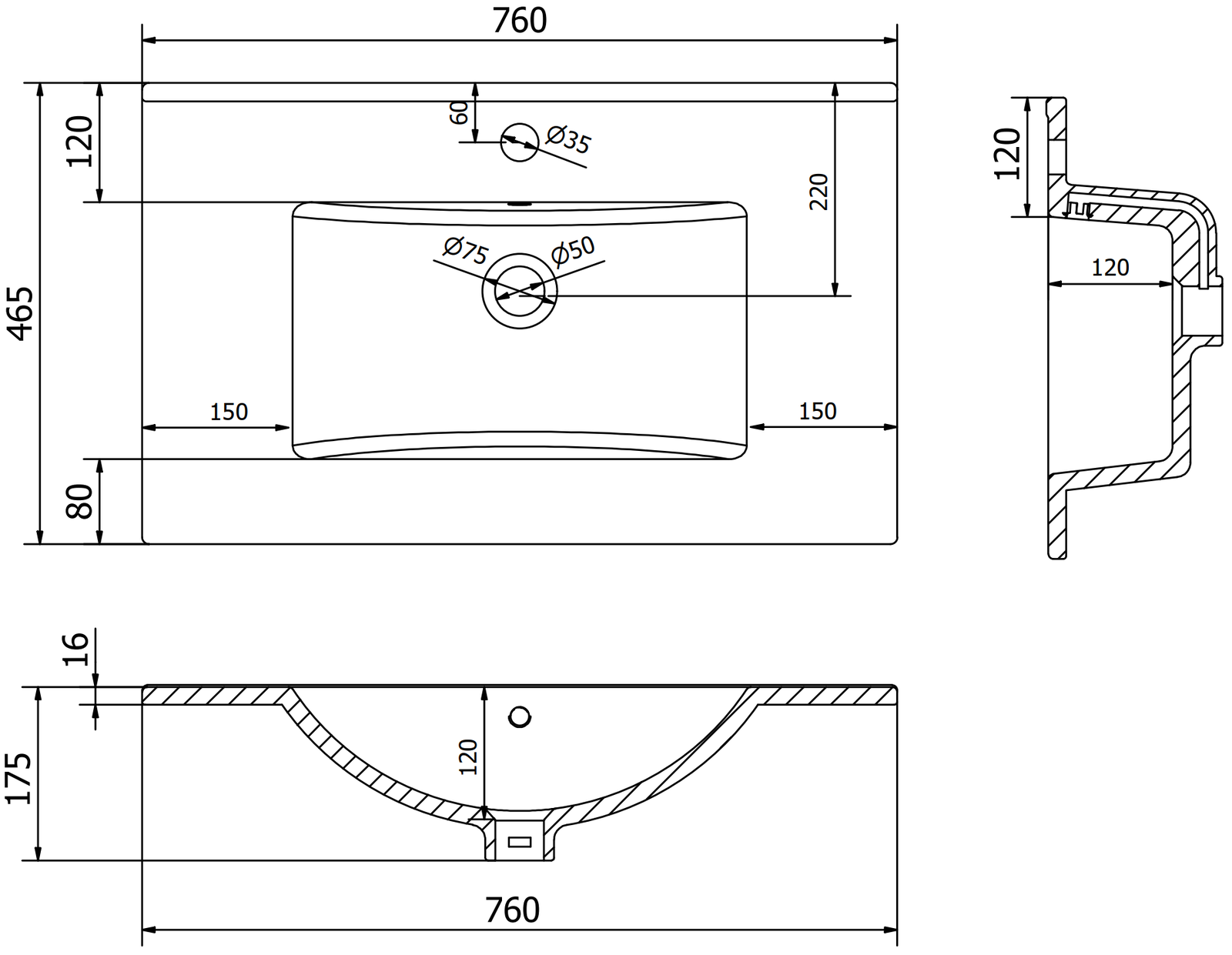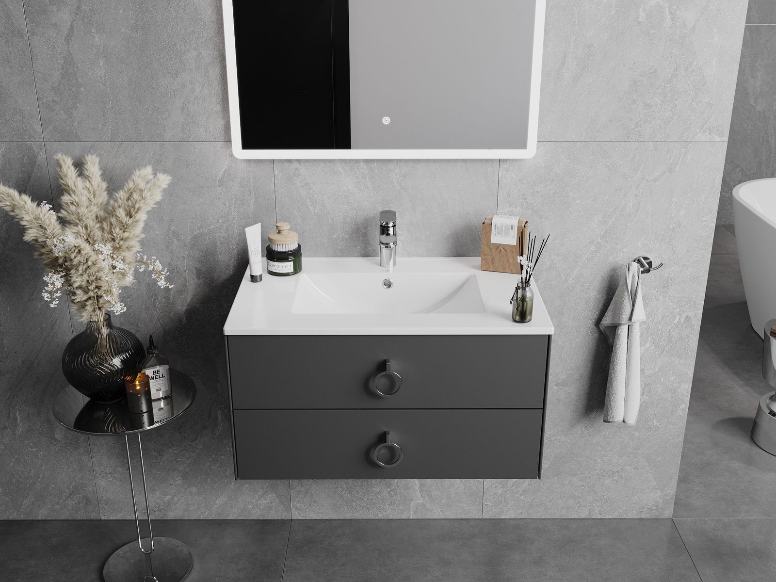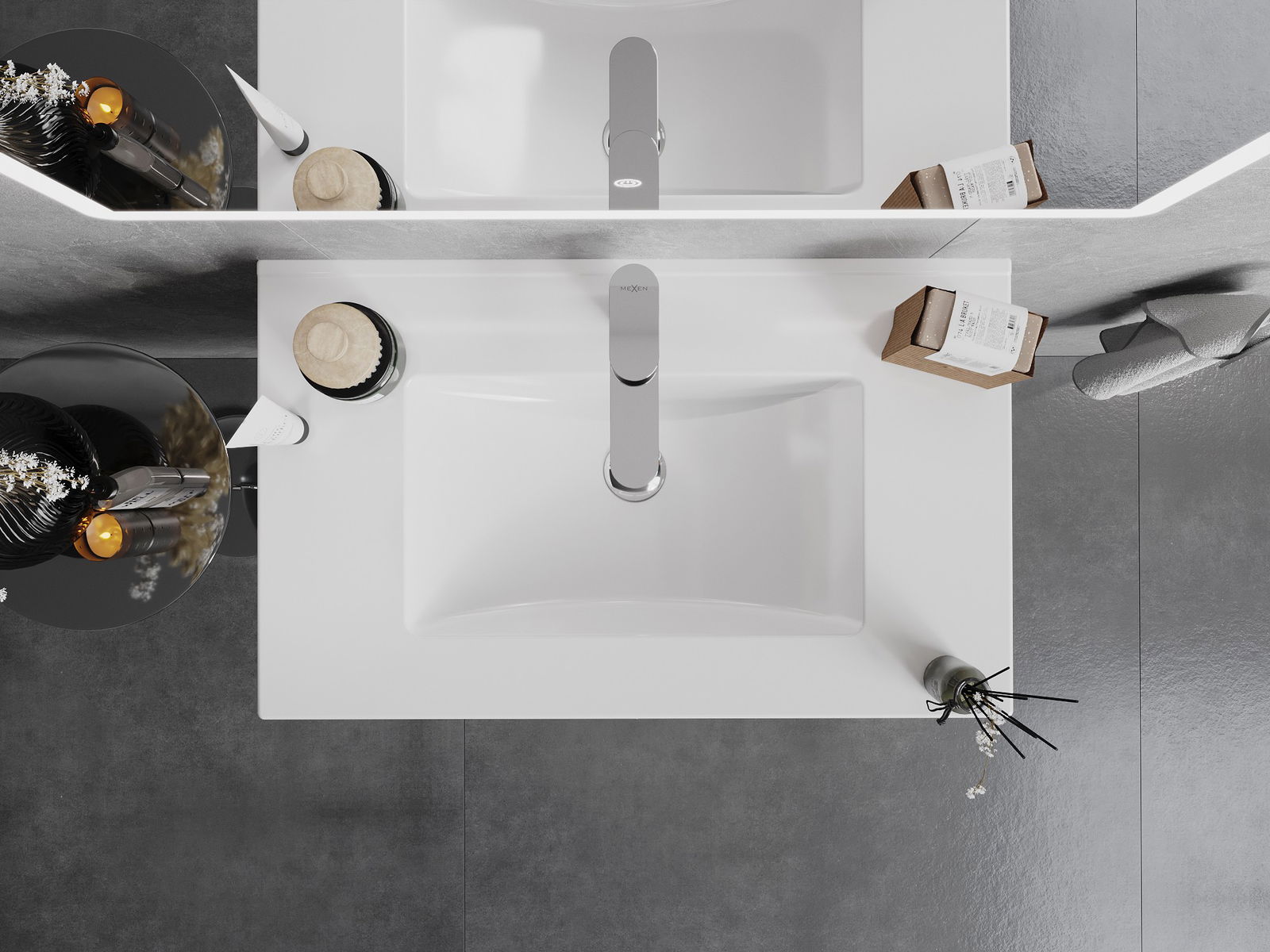 The sink has a hole in which we can mount the battery. This saves a valuable space in the bathroom and emphasize its aesthetics. This solution also allows you to easily keep clean around the sink.