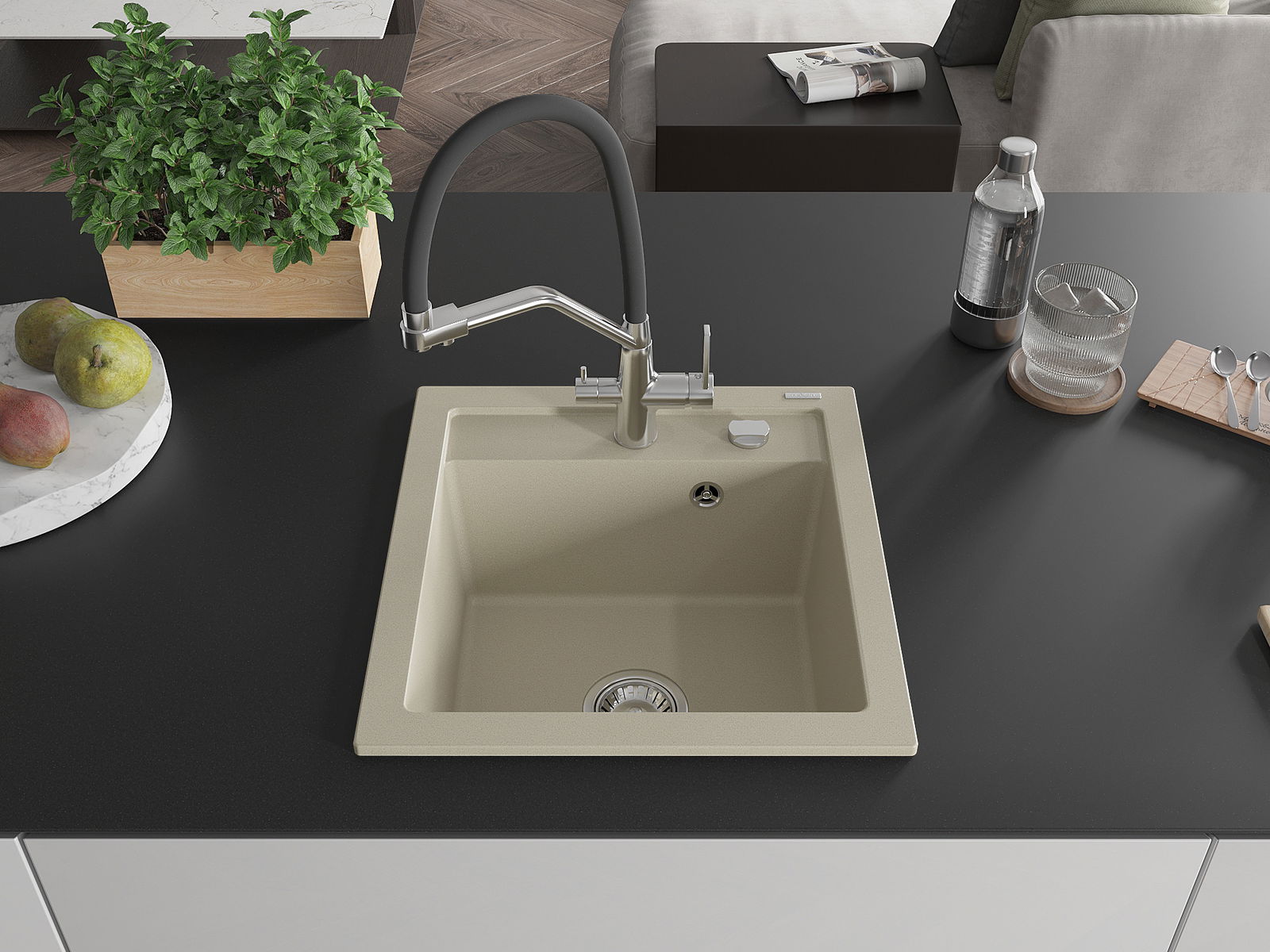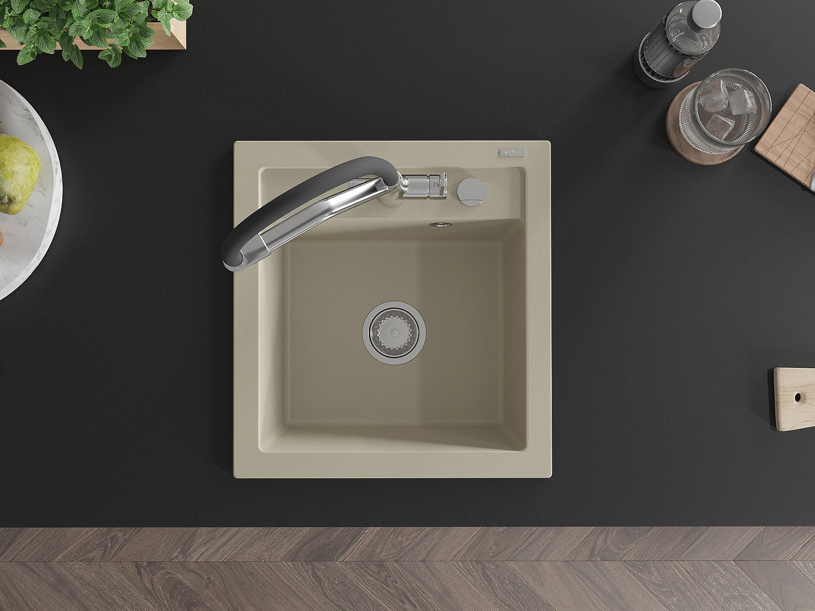 The sink is made of high quality granite. It is an elegant and, above all, practical complement to every kitchen, regardless of its style. High quality and granite durability ensure many years of use.