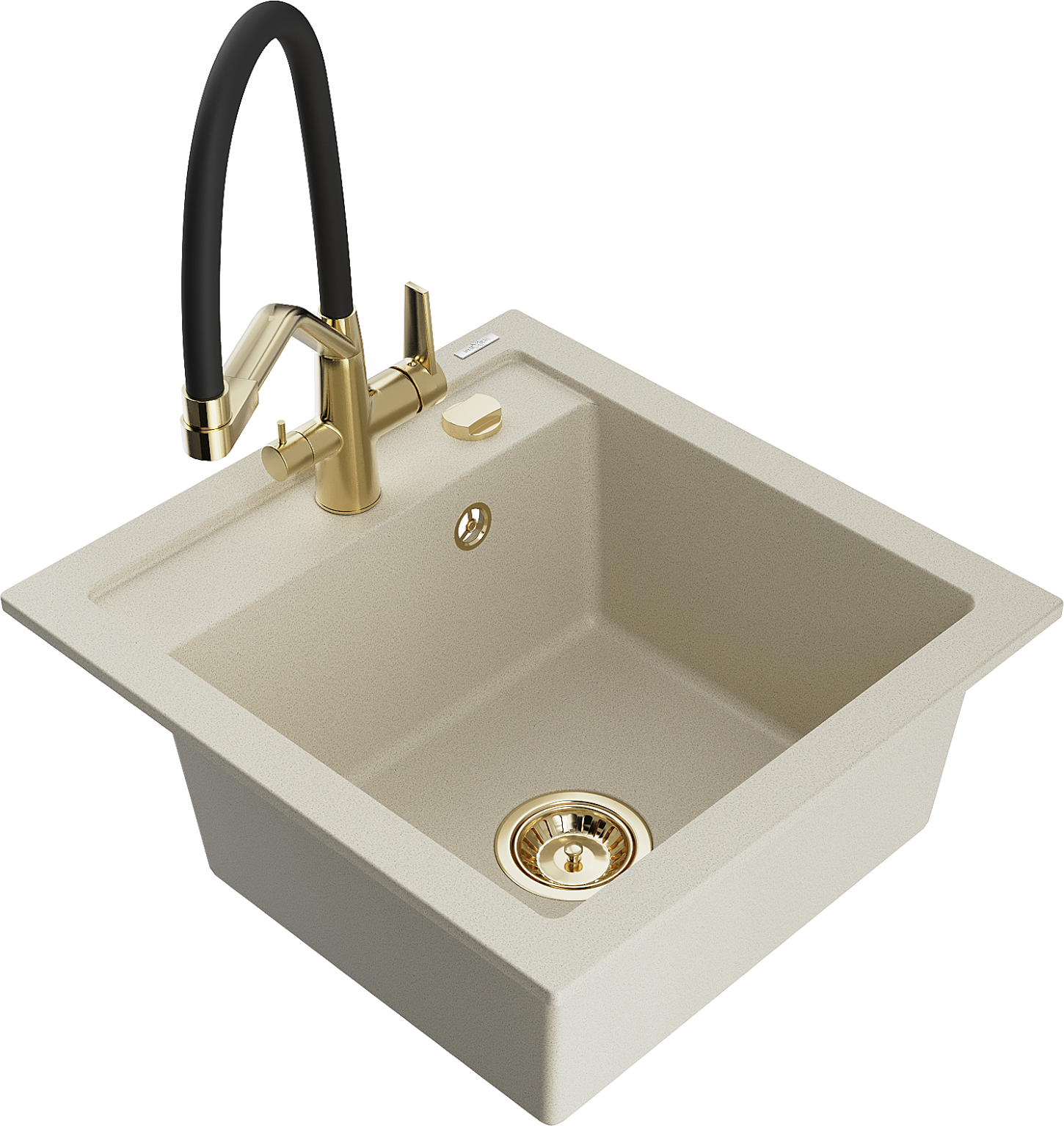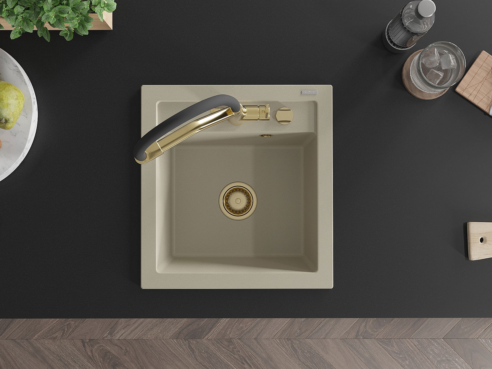 Mexen Vito 1-Bowl Granite Kitchen Sink with Duo Mixer Tap, Beige - 6503-69-671701-57-G