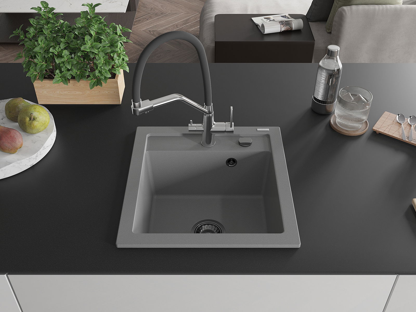 The sink is made of high quality granite. It is an elegant and, above all, practical complement to every kitchen, regardless of its style. High quality and granite durability ensure many years of use.