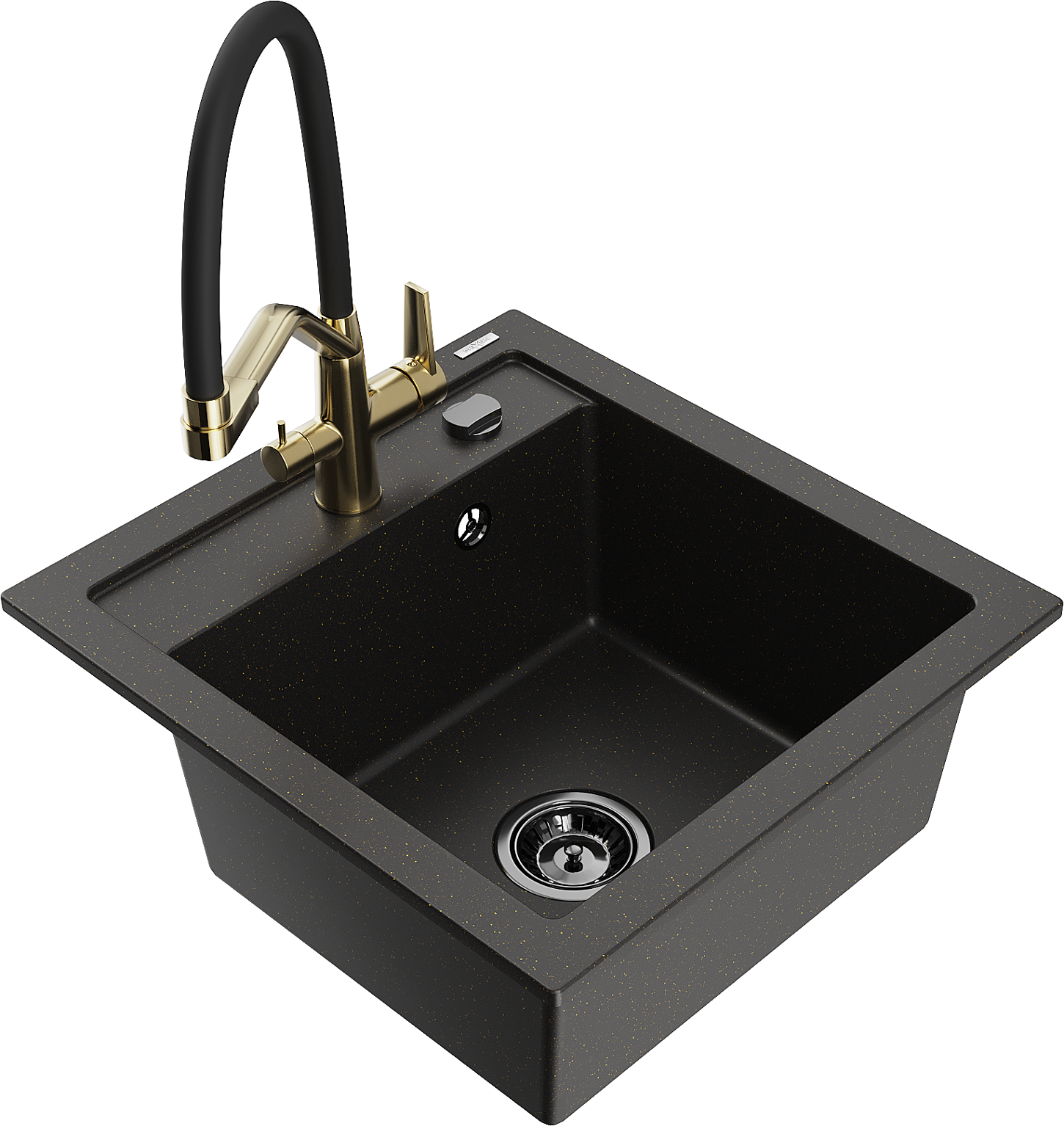Mexen Vito granite sink 1-bowl with Duo kitchen tap, black/gold metallic - 6503-75-671701-57-B