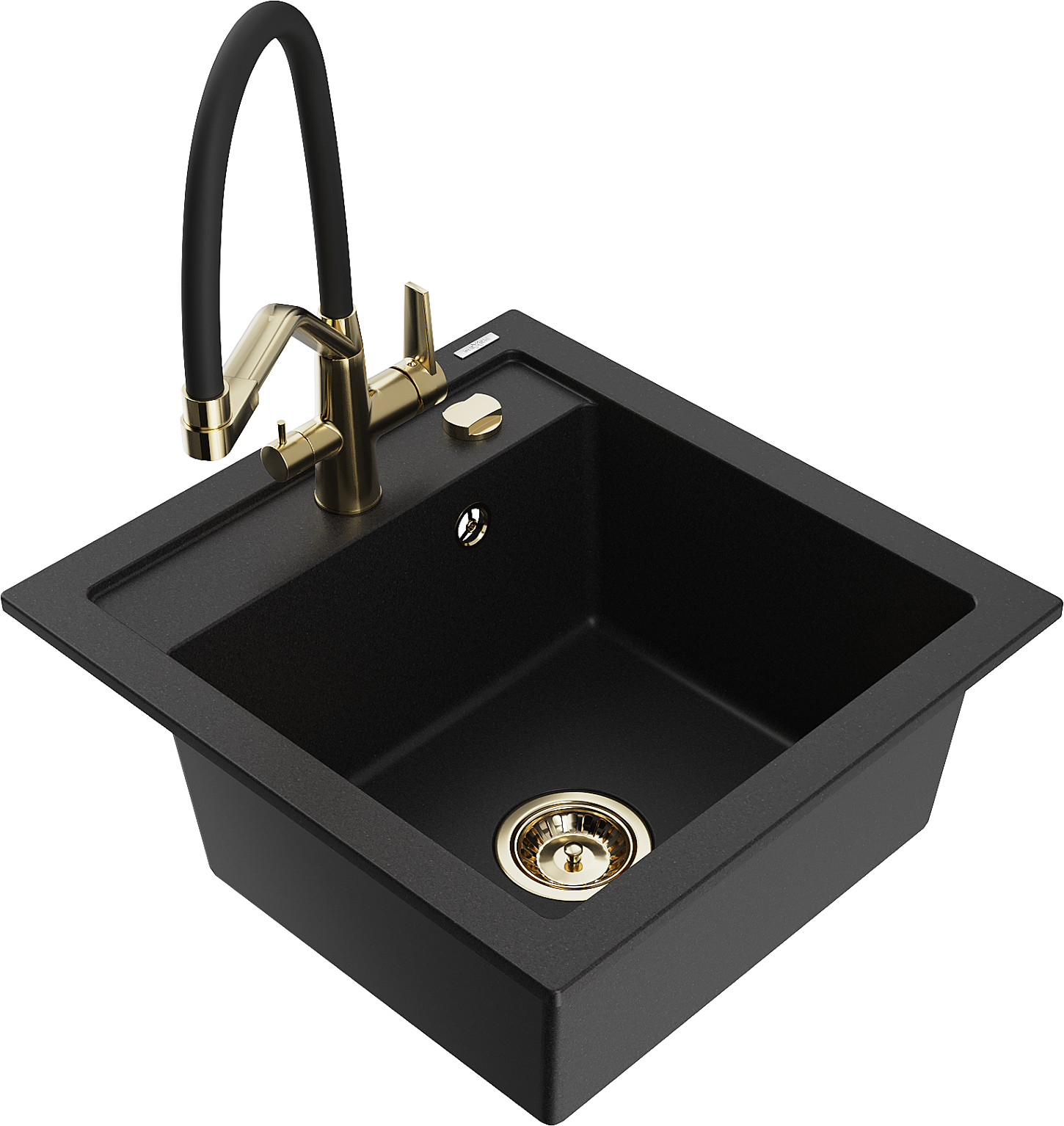 Mexen Vito 1-bowl granite kitchen sink with Duo kitchen tap, black - 6503-77-671701-57-G